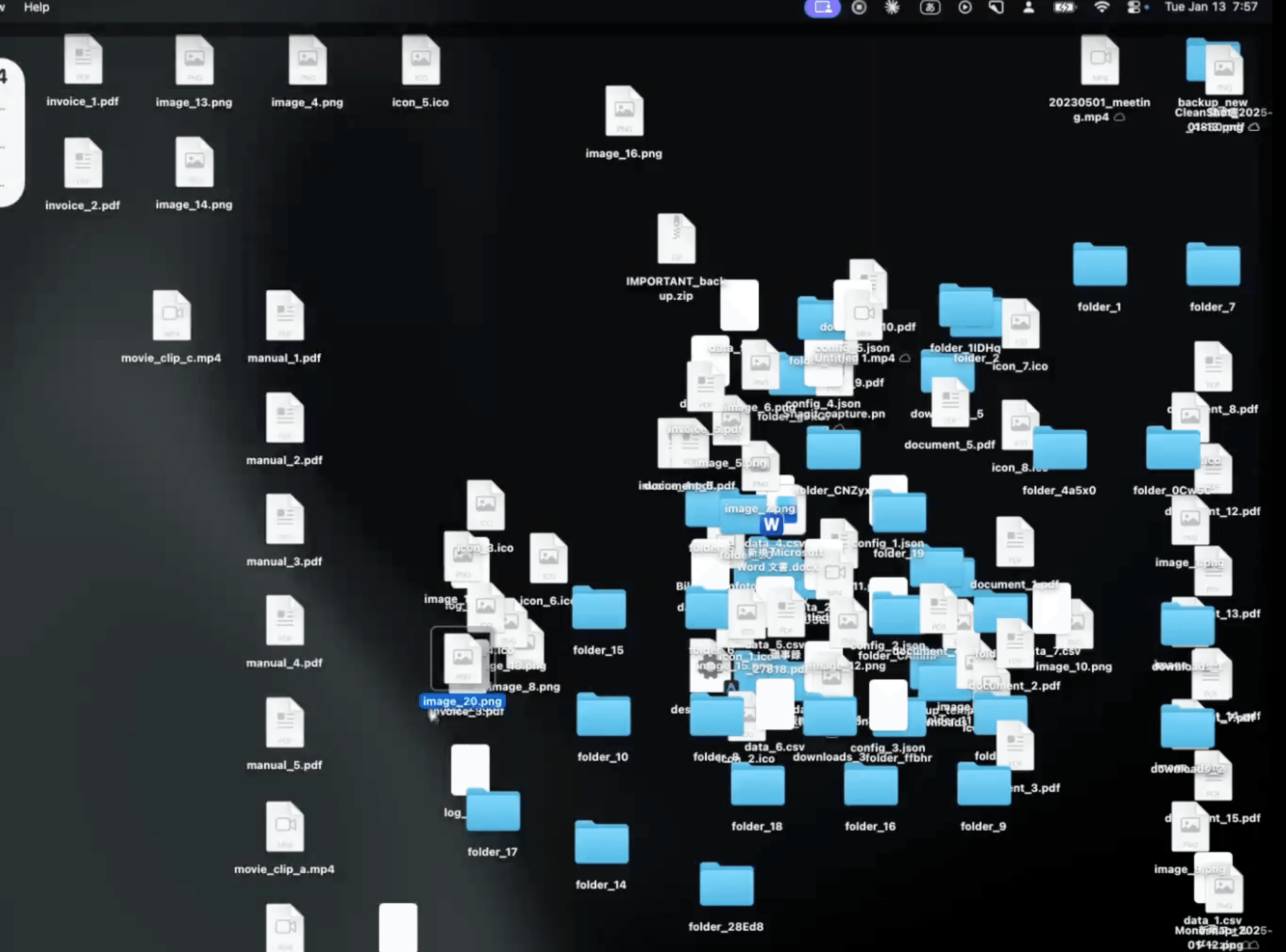 最初に試したのは、デスクトップの整理タスクです。デモ用に400個のファイルをデスクトップに散らかした状態から始めました。