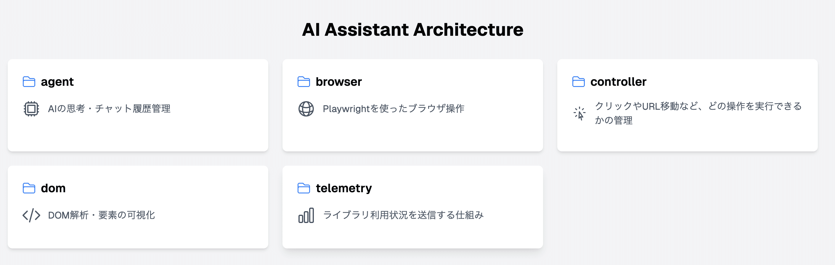 browser フォルダ は「Playwrightを使ったブラウザ操作」、