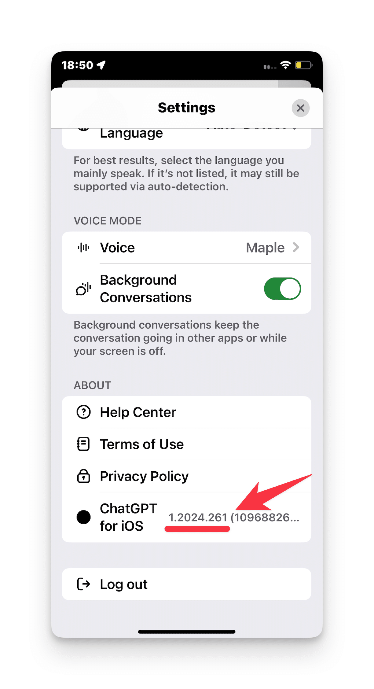 まずは、ChatGPTアプリを最新バージョン(1.2024.261以降)に更新します。App StoreまたはGoogle Playストアでアップデートを確認してください。