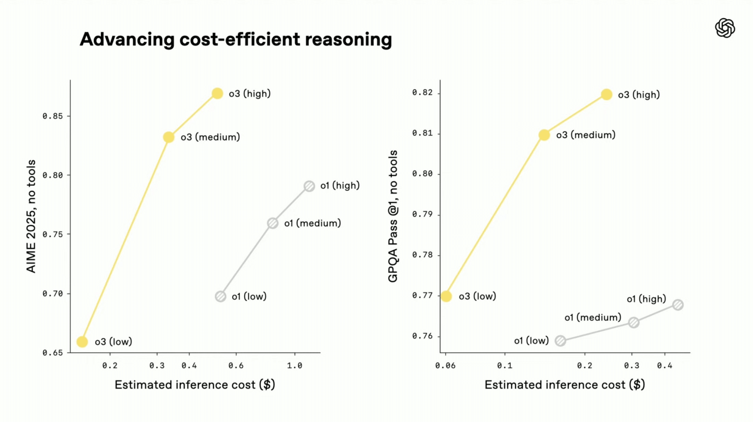 OpenAIは、多くの実世界のユースケースにおいて、o3はo1よりも、o4-miniはo3-miniよりも、結果的に「より賢く、かつ安価になる」だろうと予測しています。