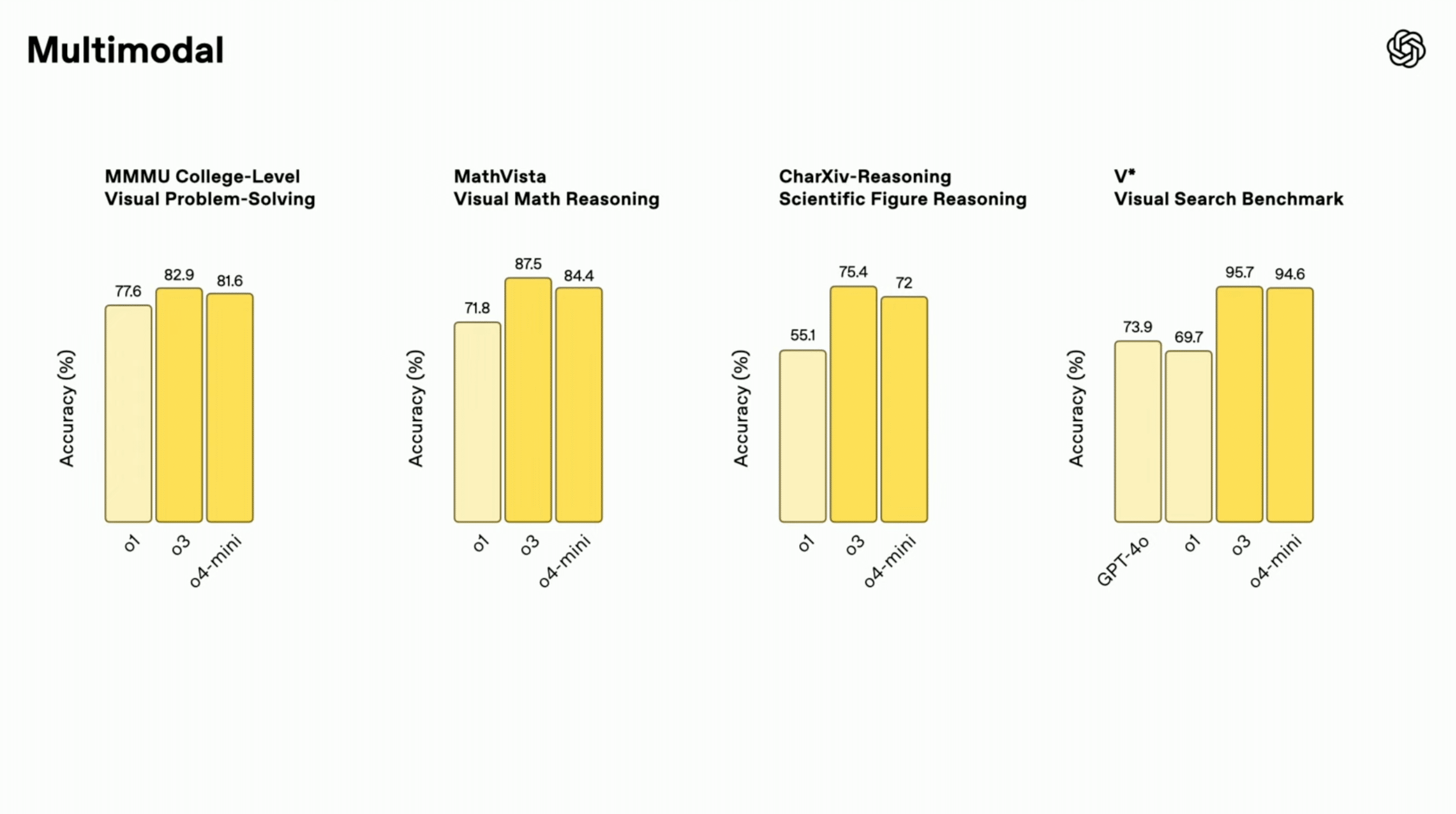 AIME 2024および2025といった数学ベンチマークで最高の性能を記録したと報告されています。o3よりも大幅に高い利用制限が設けられており、推論が有効な質問に対して、大量・高スループットな利用に適していると位置づけられています。