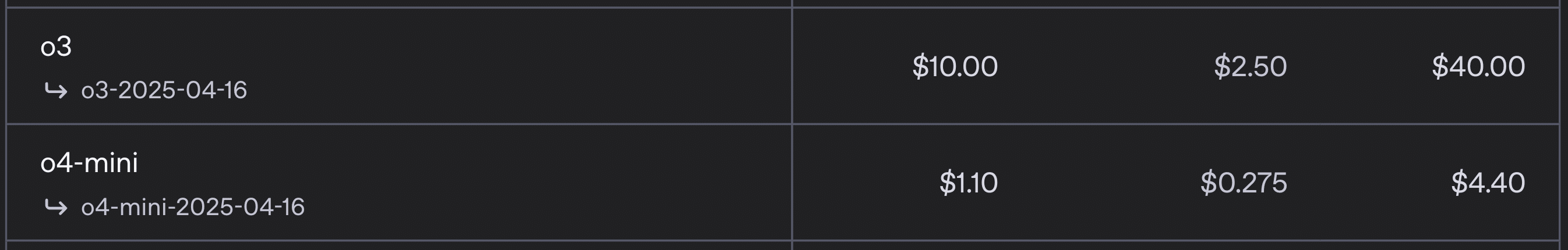 今回発表されたo3およびo4-miniモデルのAPI利用料金も公開されています。
