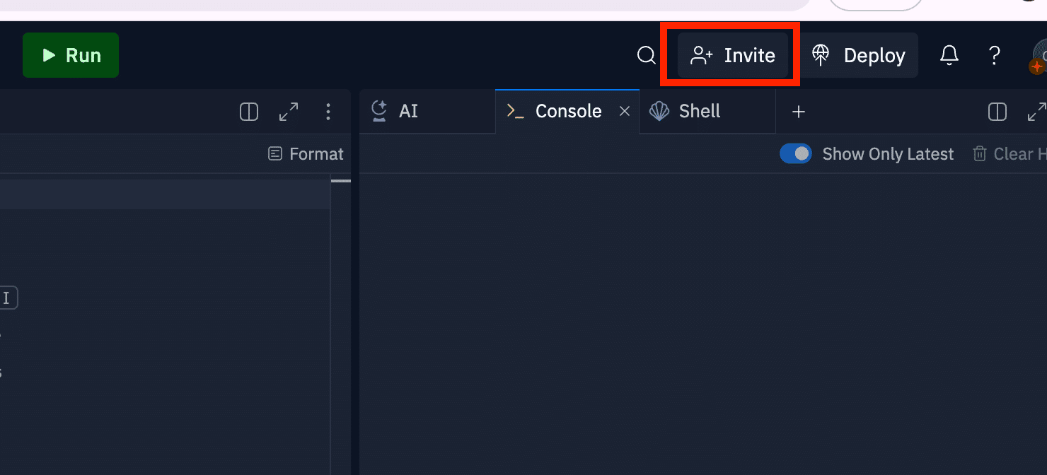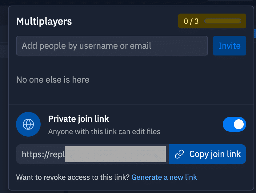 「Invite」から複数人を招待して同時に同じReplを編集できます。
