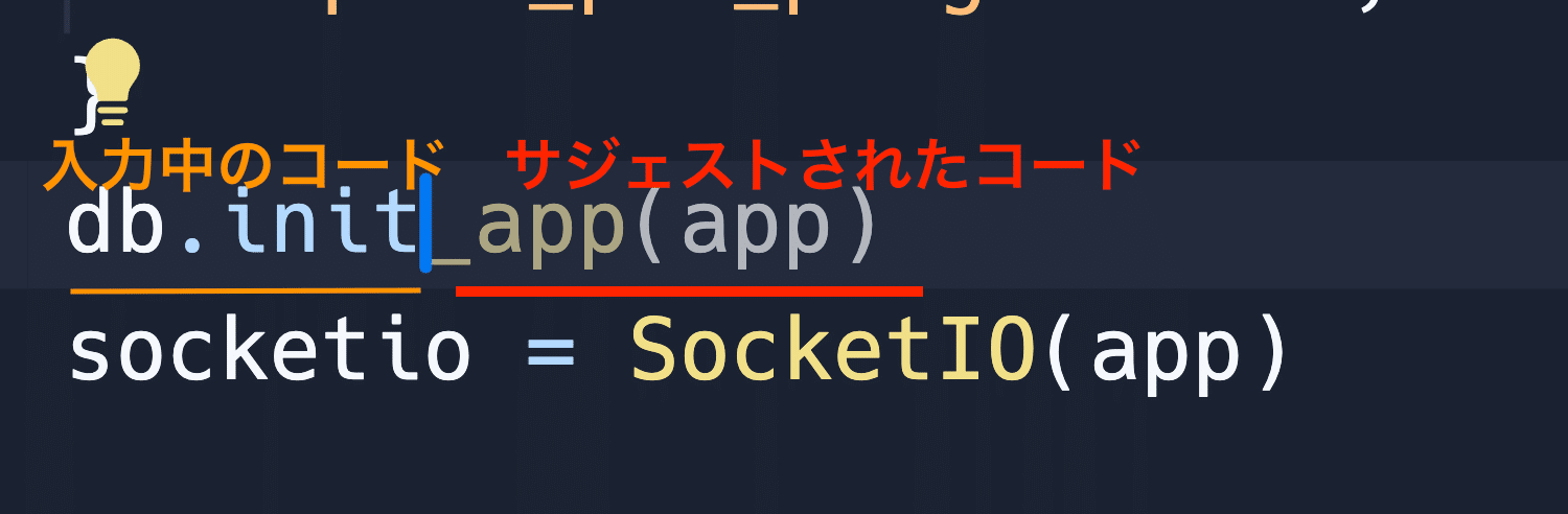 入力中のコードに基づいて、次に来る可能性のあるコードを予測し、サジェストしてくれます。