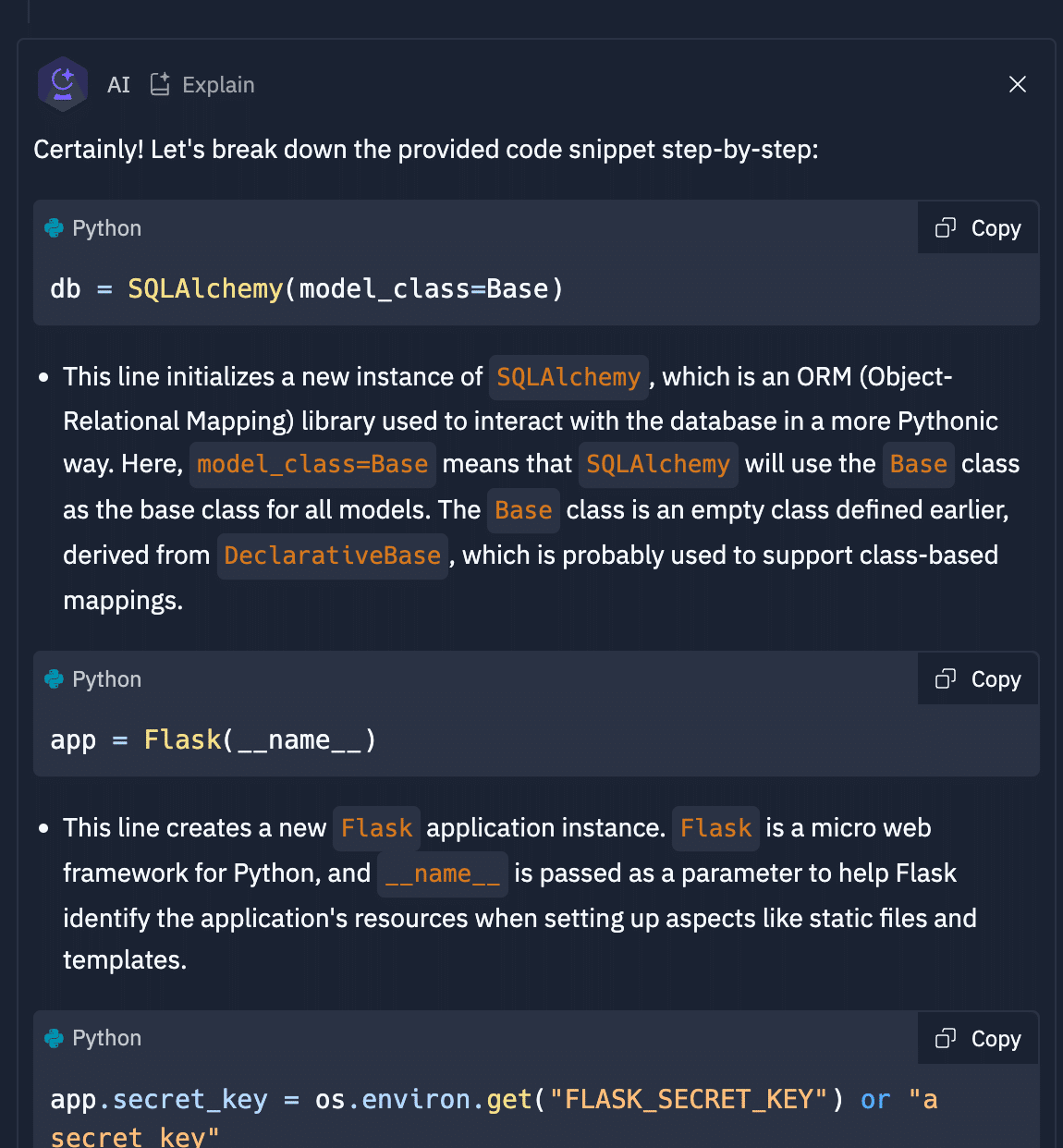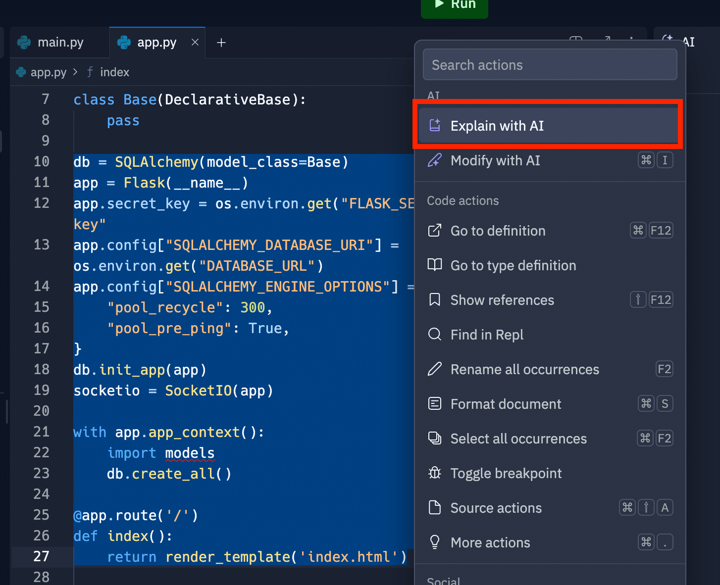 コードを選択し、右クリックメニューから "Explain with AI" を選択すると、AI がコードの動作を分かりやすく解説してくれます。