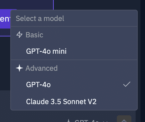 また、現時点(2024/11/7)で使えるモデルはGPT-4o-mini、GPT-4o、Claude3.5SonnetV2となっています。