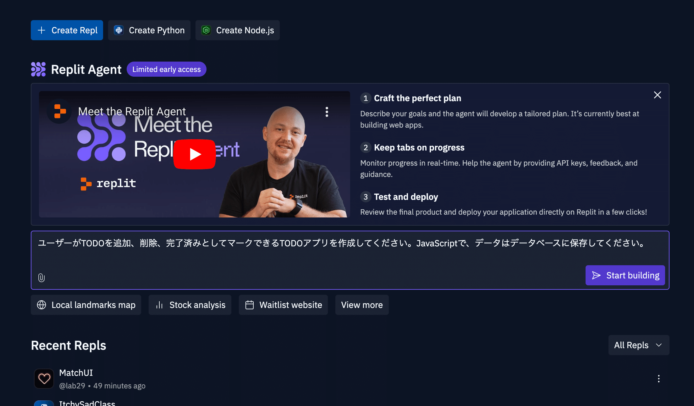 Replit Agent を使ってみよう
