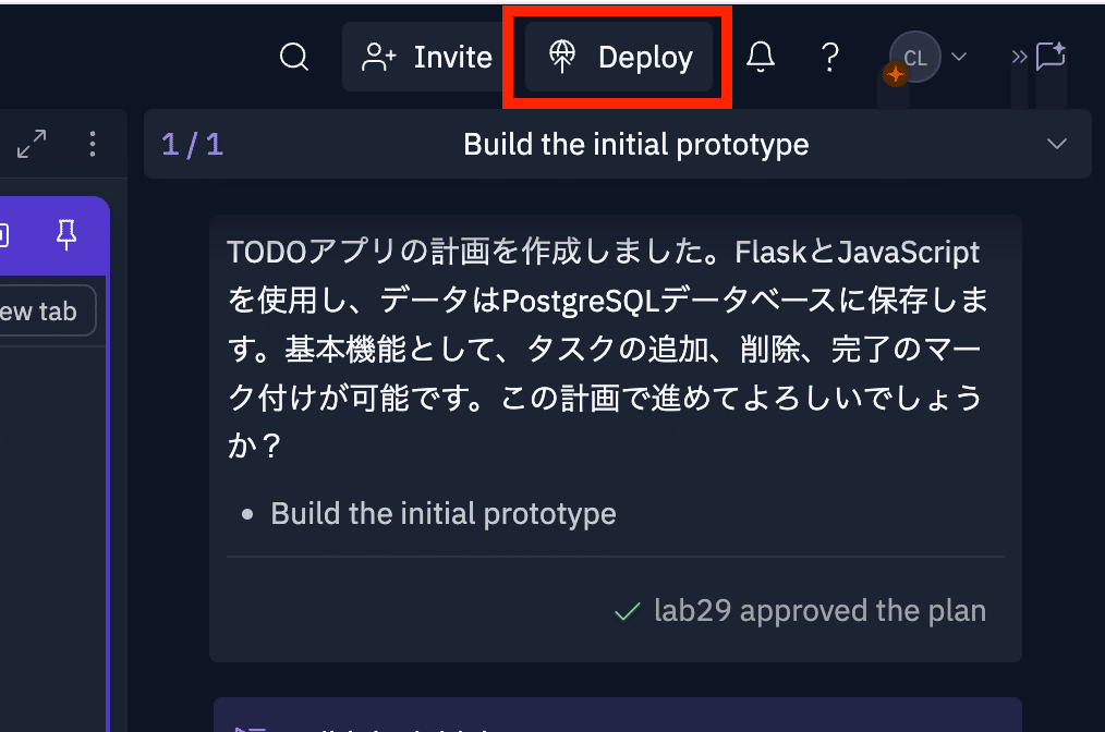 最後に、画面右上の「Deploy」を利用してアプリケーションを公開します。