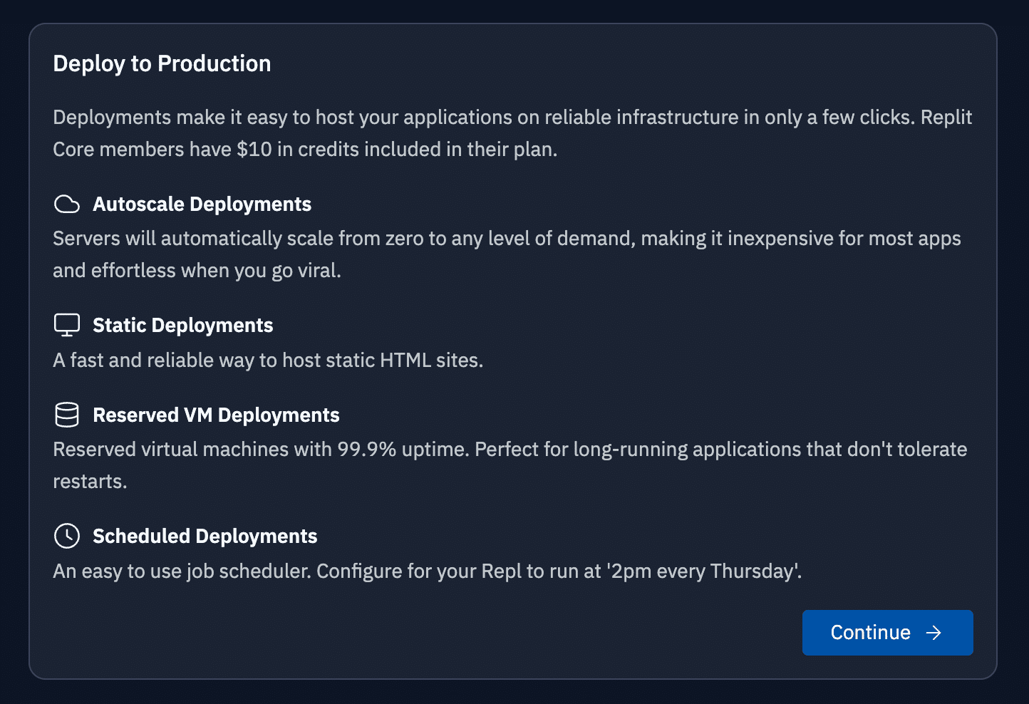 Replit Coreのメンバーは、プランに含まれている10ドル分のクレジットを利用できます。