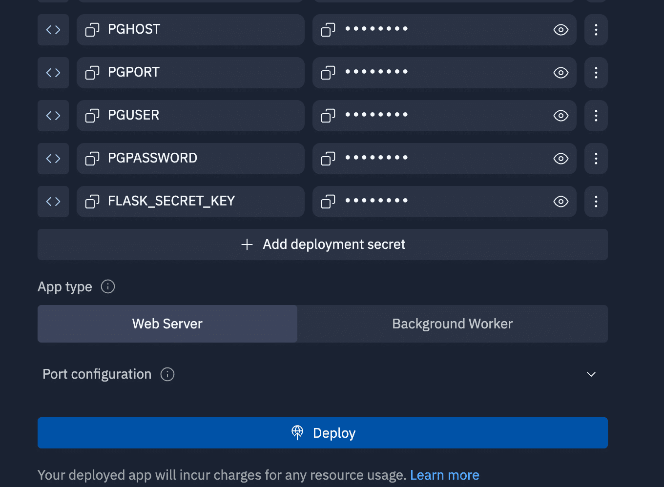 各種設定ができたら、「Deploy」をクリック。