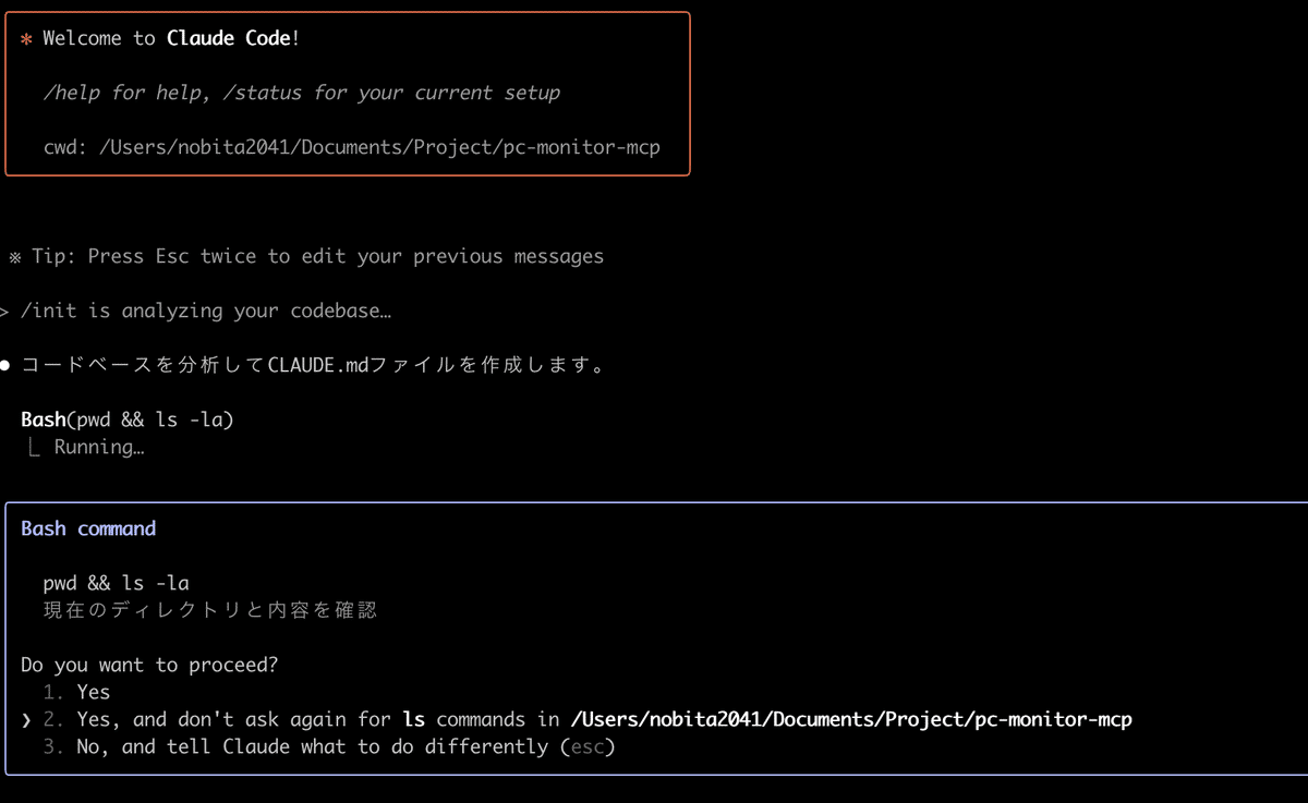 特に既存のプロジェクトでClaude Codeを初めて使用する際は、必ず/initを実行してからタスクを開始することを強く推奨します。