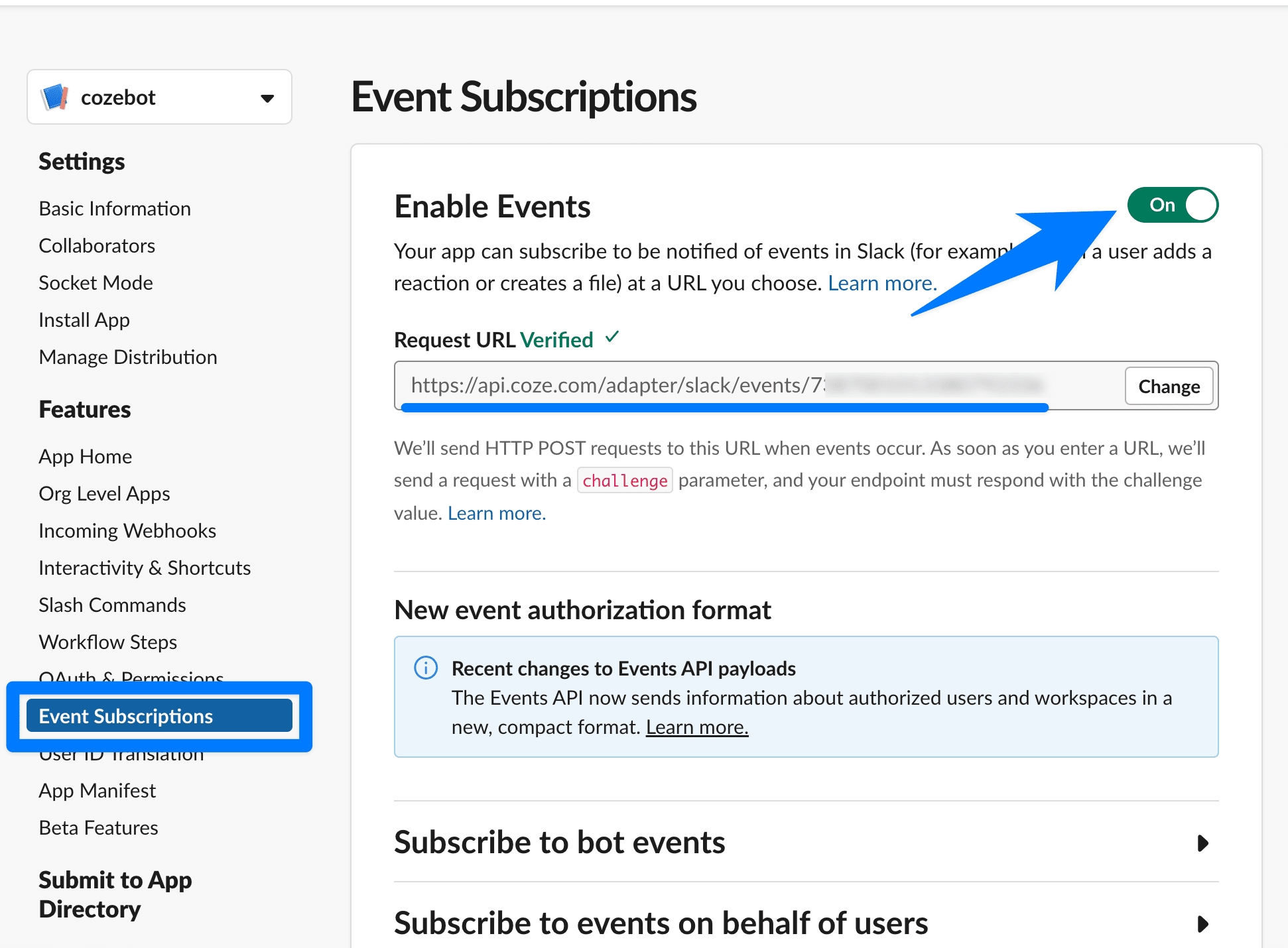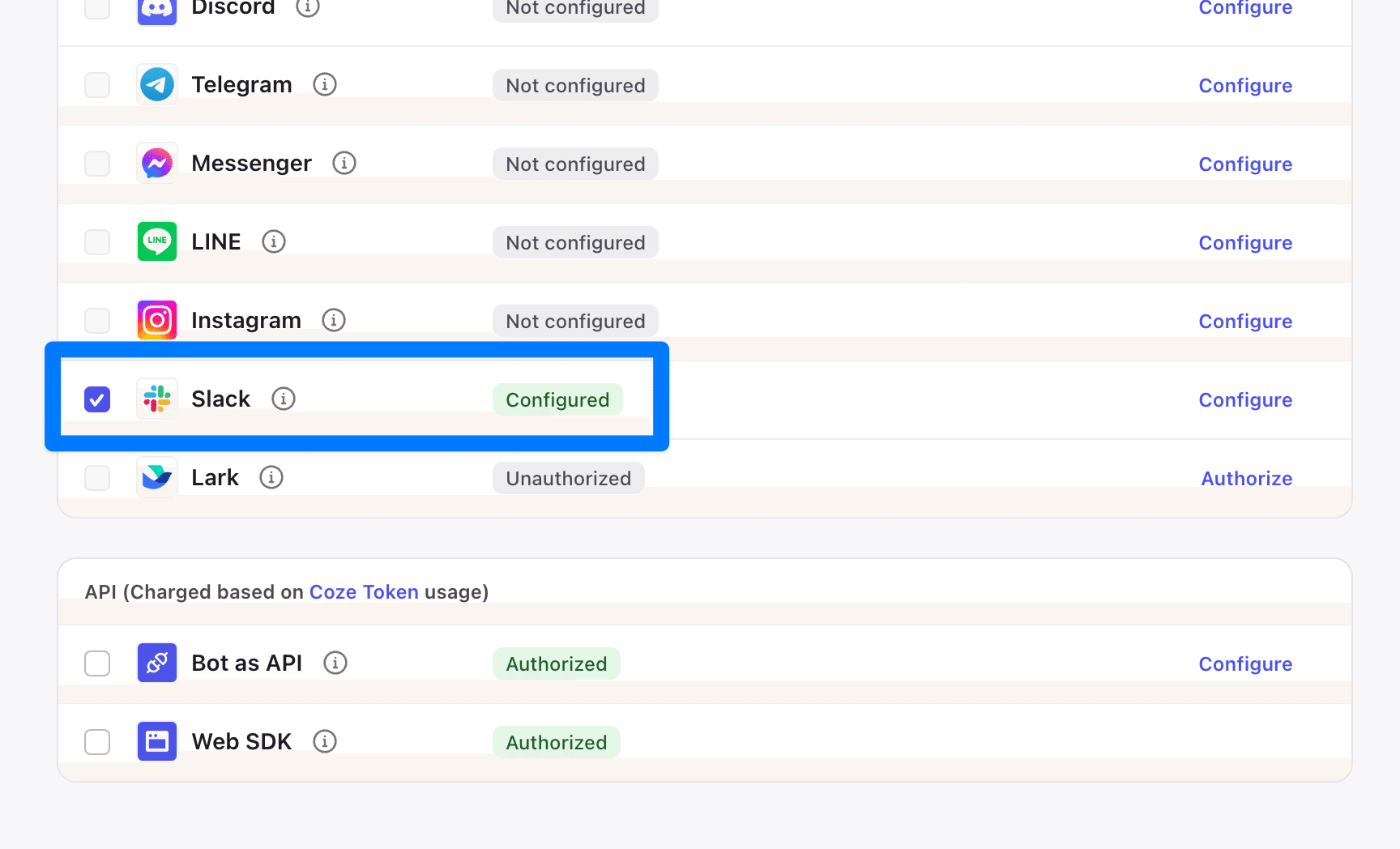 これらの設定により、SlackとCozeが相互に通信できるようになります。