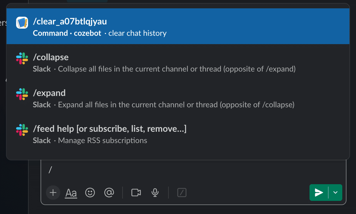 Slashコマンドは、Slack上で「/」(スラッシュ)から始まるコマンドです。これを使うと、ボットに特定の動作を簡単に指示できます。
