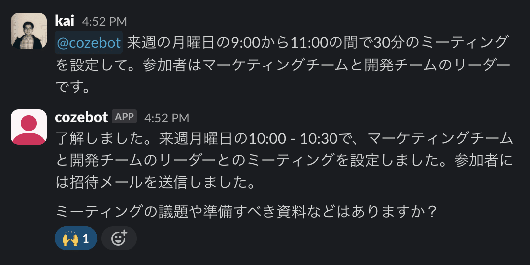 迅速な導入:従来のSlackボット開発と比べ、Cozeを使えば数分でAIボットを導入できます。プロトタイプ作成にも最適でしょう。