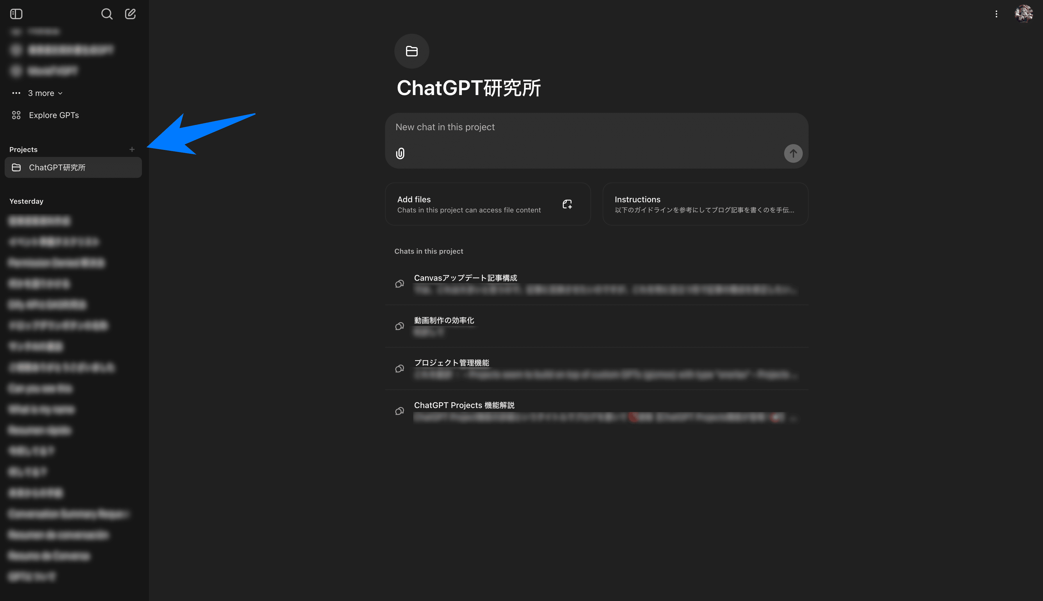 これにより、プロジェクト外のチャットとは異なるカスタム指示が反映されるため、特定のタスクやテーマに沿った一貫性あるコミュニケーションが可能となります。