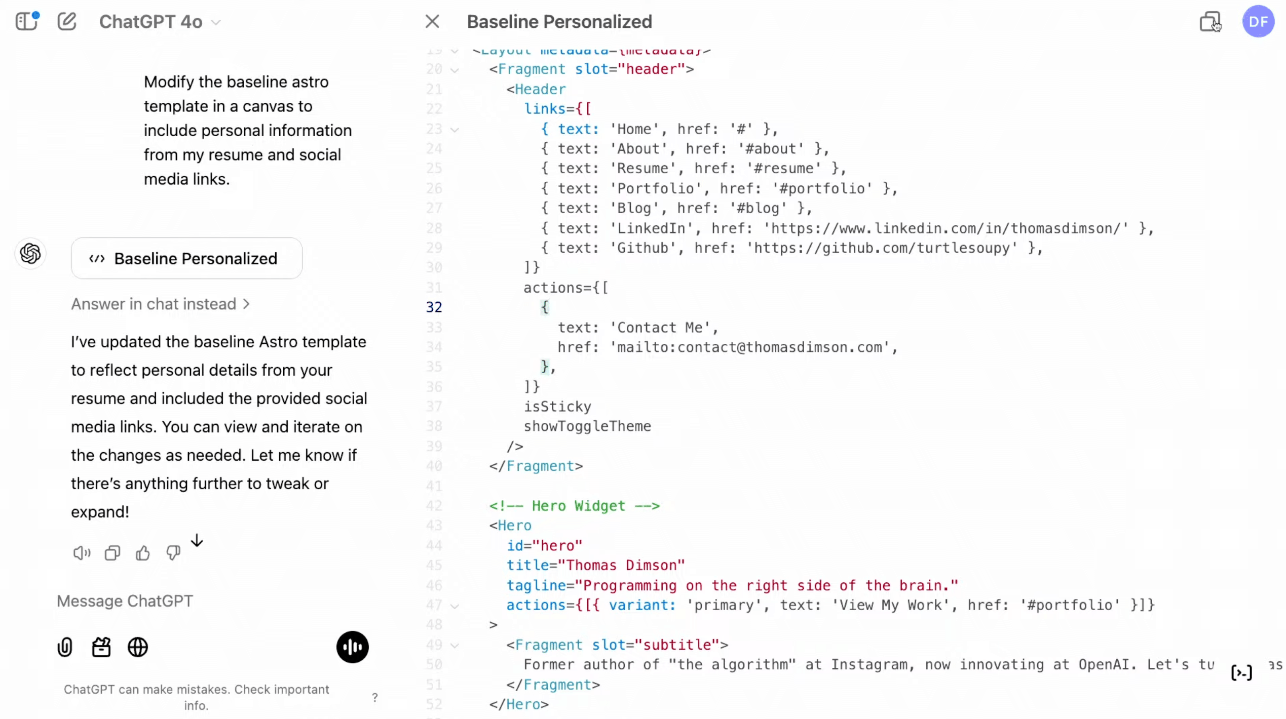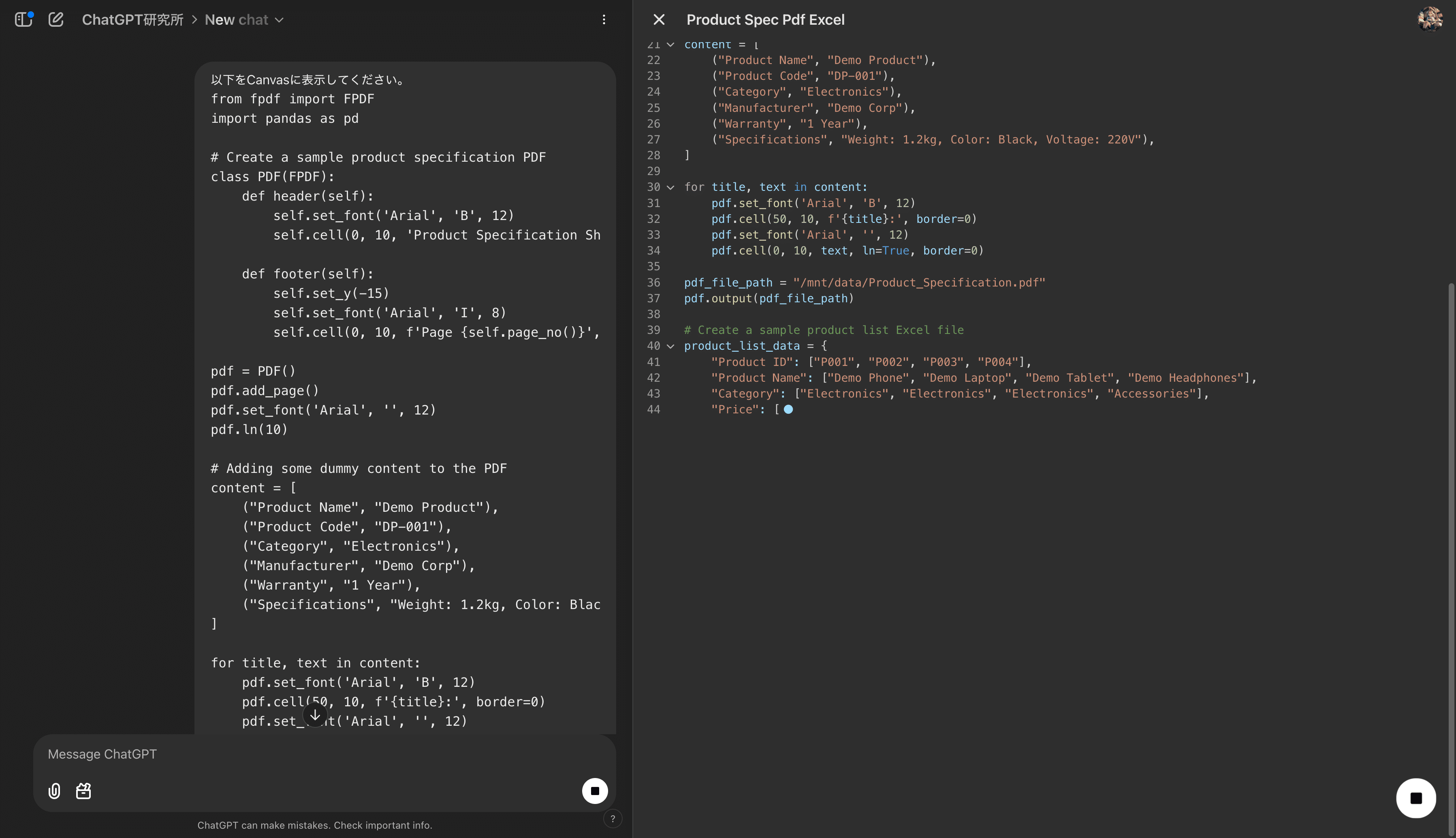 Canvas機能でコードを行単位で比較・修正し、モデルが提案する改善点を即時反映。