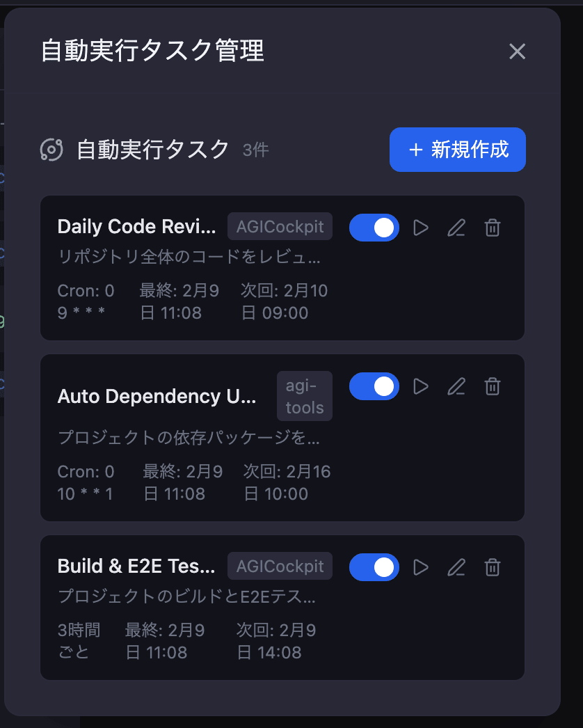 面倒な設定画面を開く必要はありません。マスターエージェントに自然言語で伝えるだけで、自動タスクが設定されます。