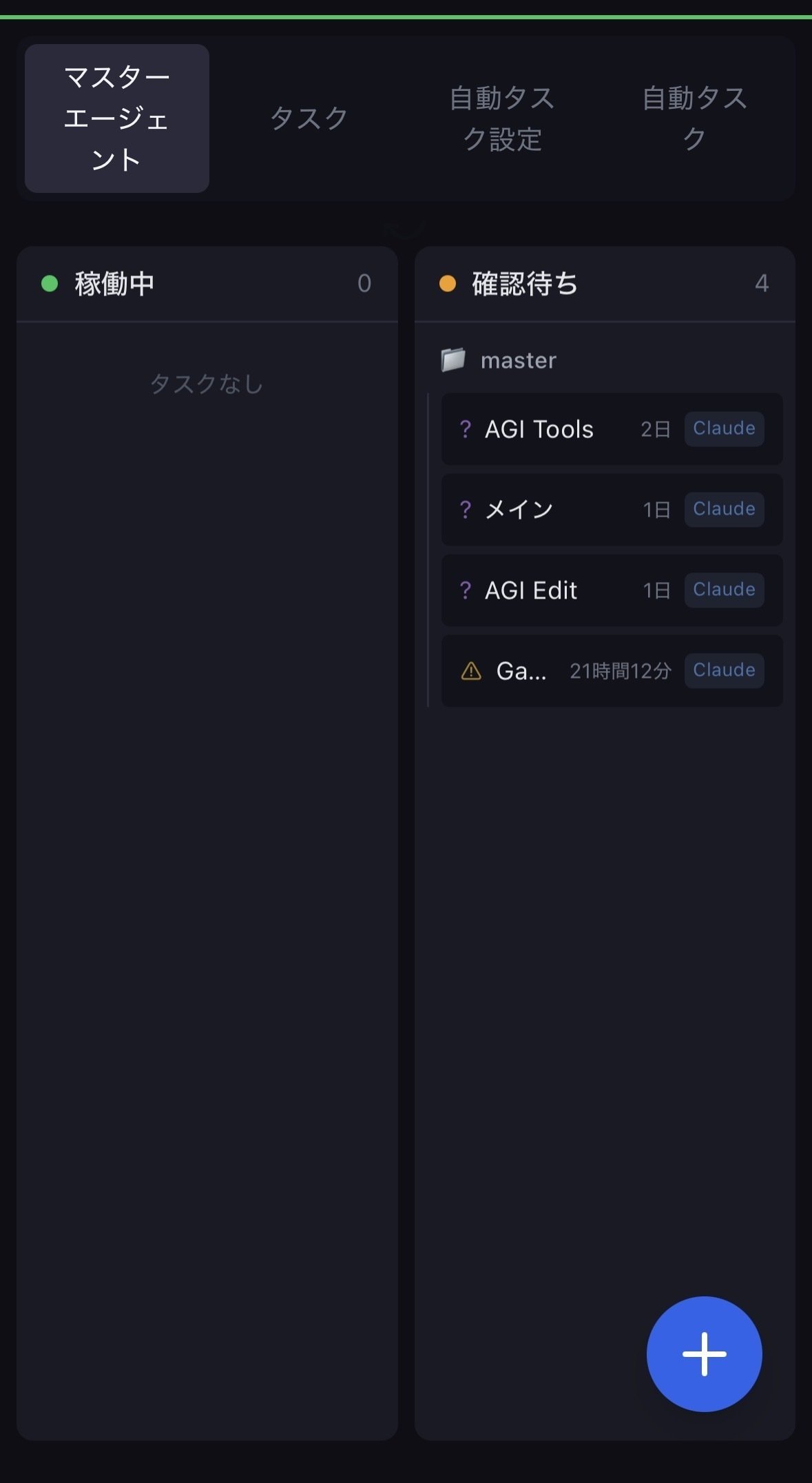 これまで人間がやっていた「タスクの分割」「エージェントの割り振り」「進捗確認」を、マスターエージェントが自動でやってくれます。あなたはゴールを伝えるだけ。