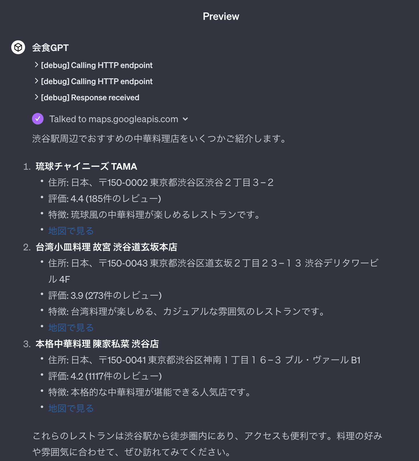 いきなりですが、Google Places API を GPT に設定する方法を見ていきます。