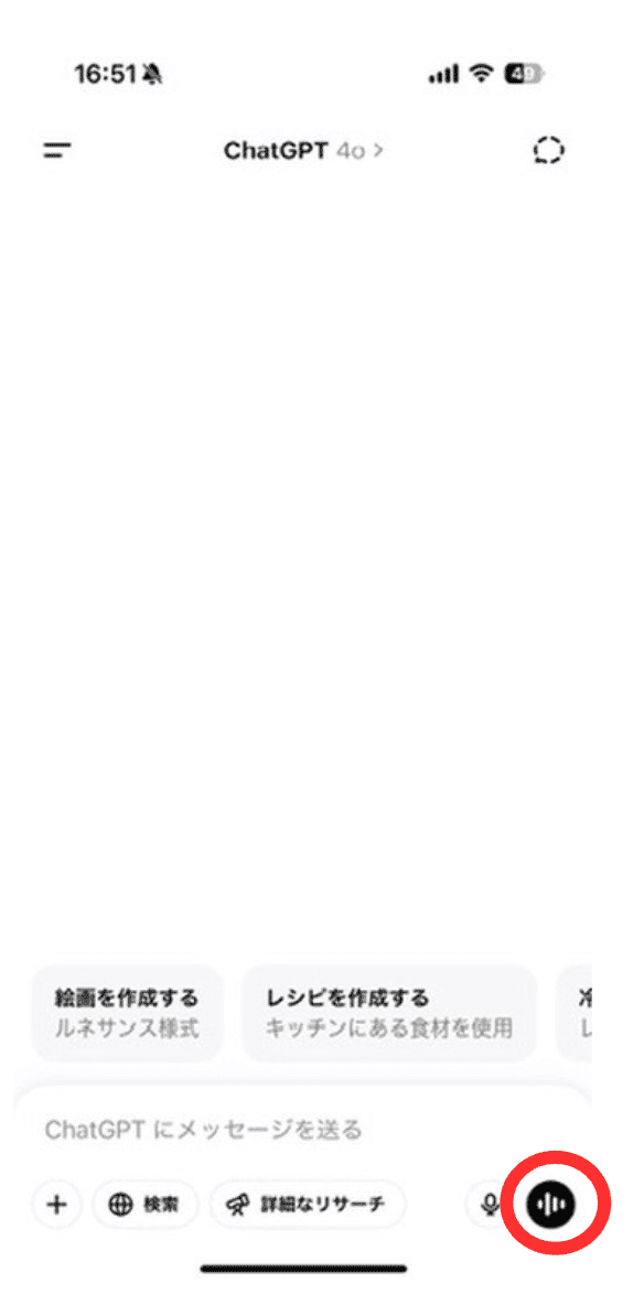 ChatGPTを開いて、右下の波形マークのアイコンをクリックします。