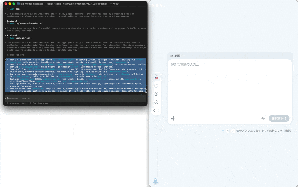 ② AIモデル(コーディング特化モデルなど)の英語回答を、その場で和訳して読みやすくする