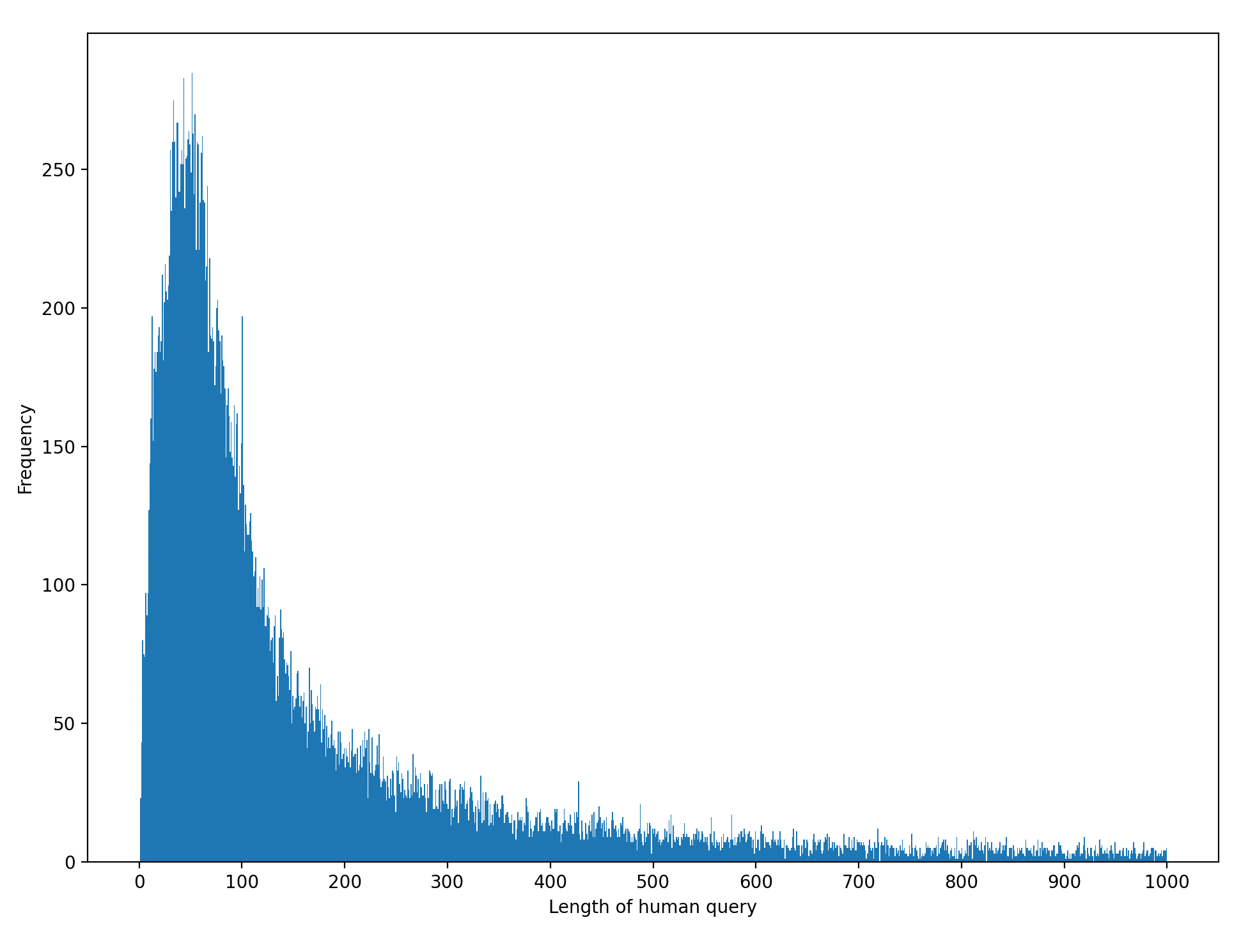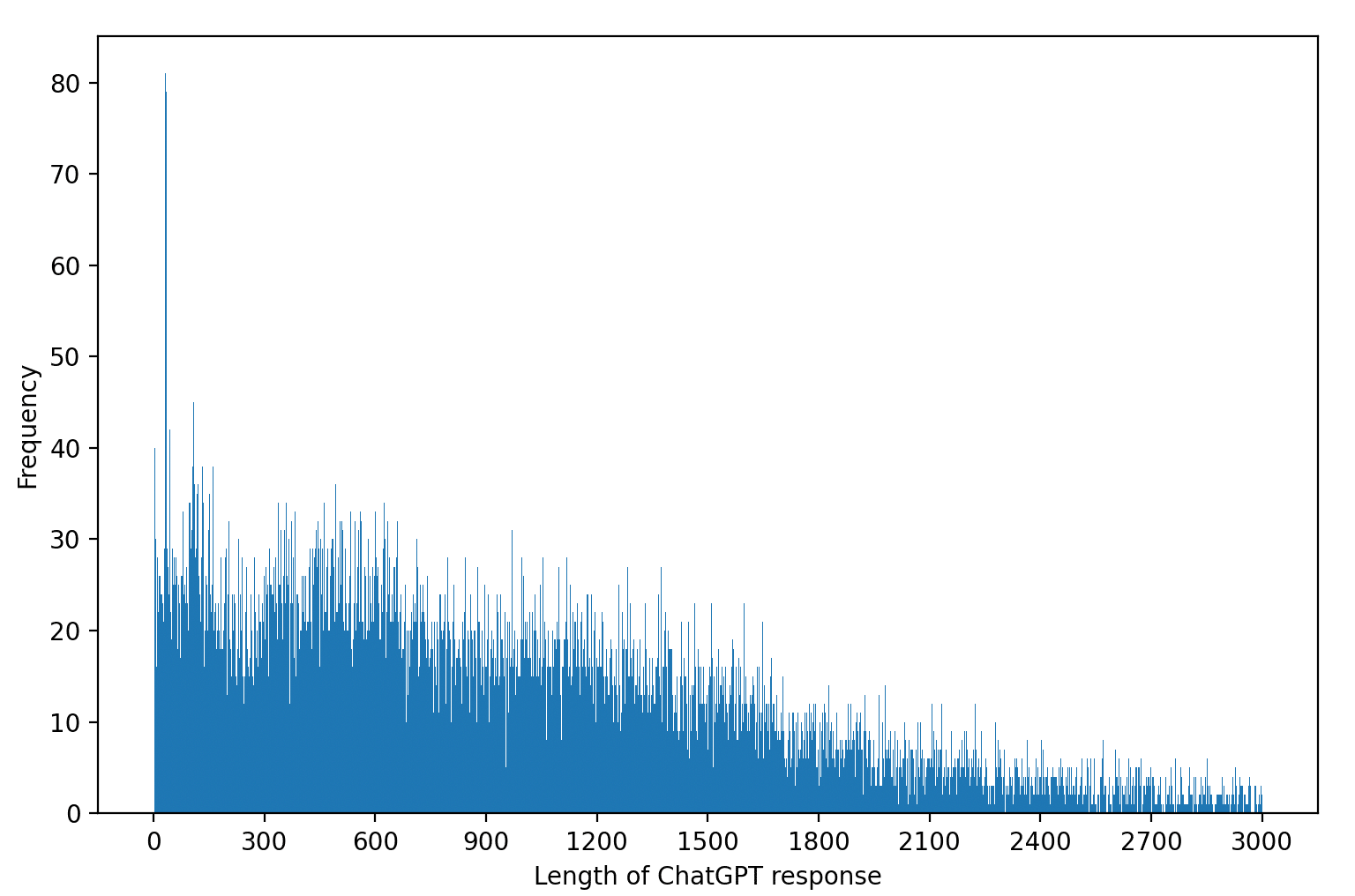 これは興味深い結果です。人間の入力とは違い、非常に広範な長さの返答があることがわかります。