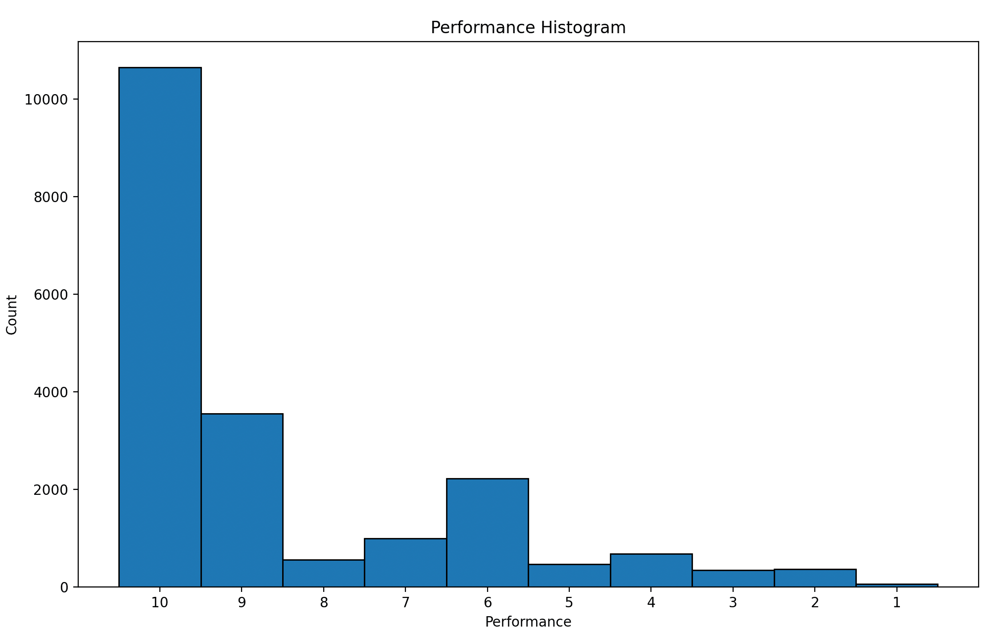 以下のグラフが、ChatGPT のパフォーマンス(10が最高で、1が最低)を表したグラフです。概ね 10と9でパフォーマンスが非常にいいことがわかります。