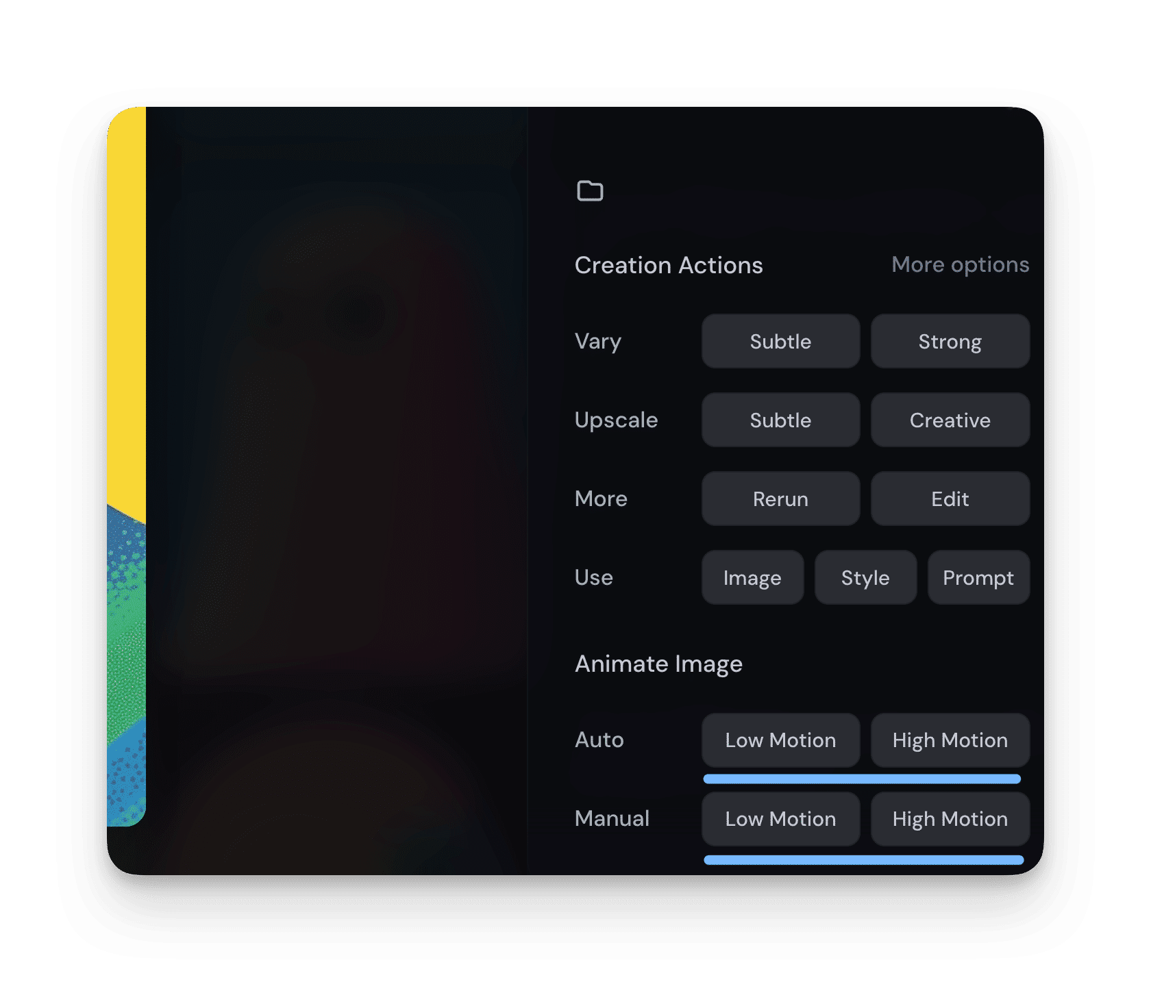 Animate (Manual): 動きを指示するプロンプトを手動で入力し、より細かくアニメーションを制御できます。