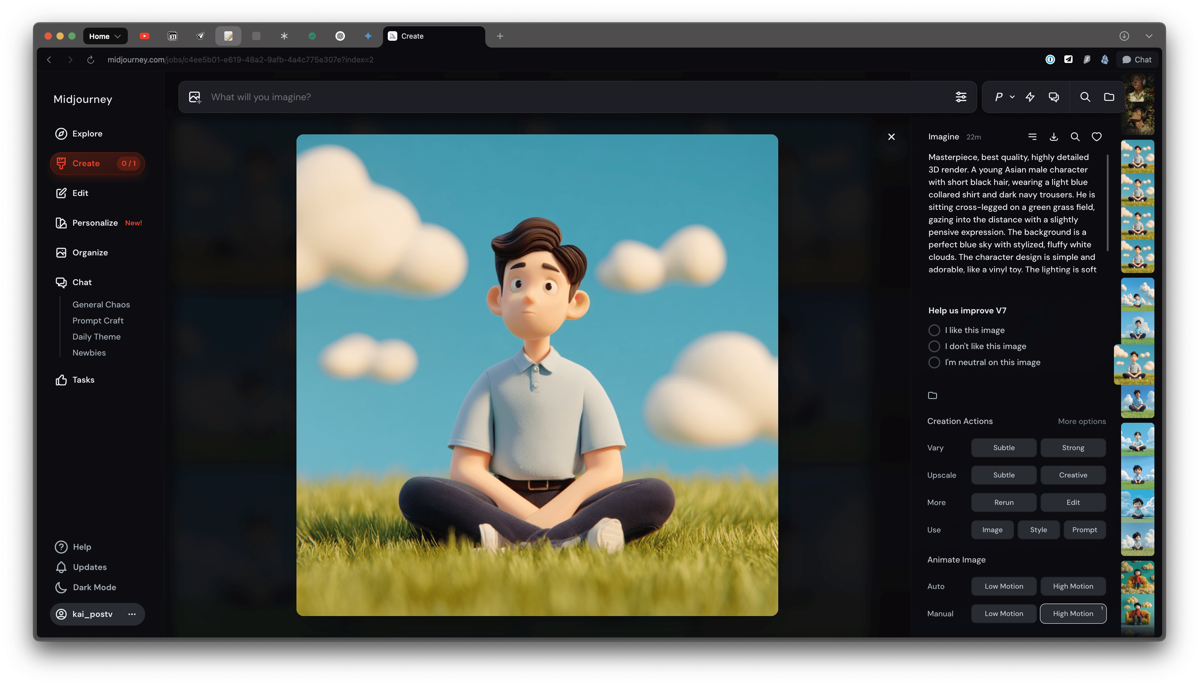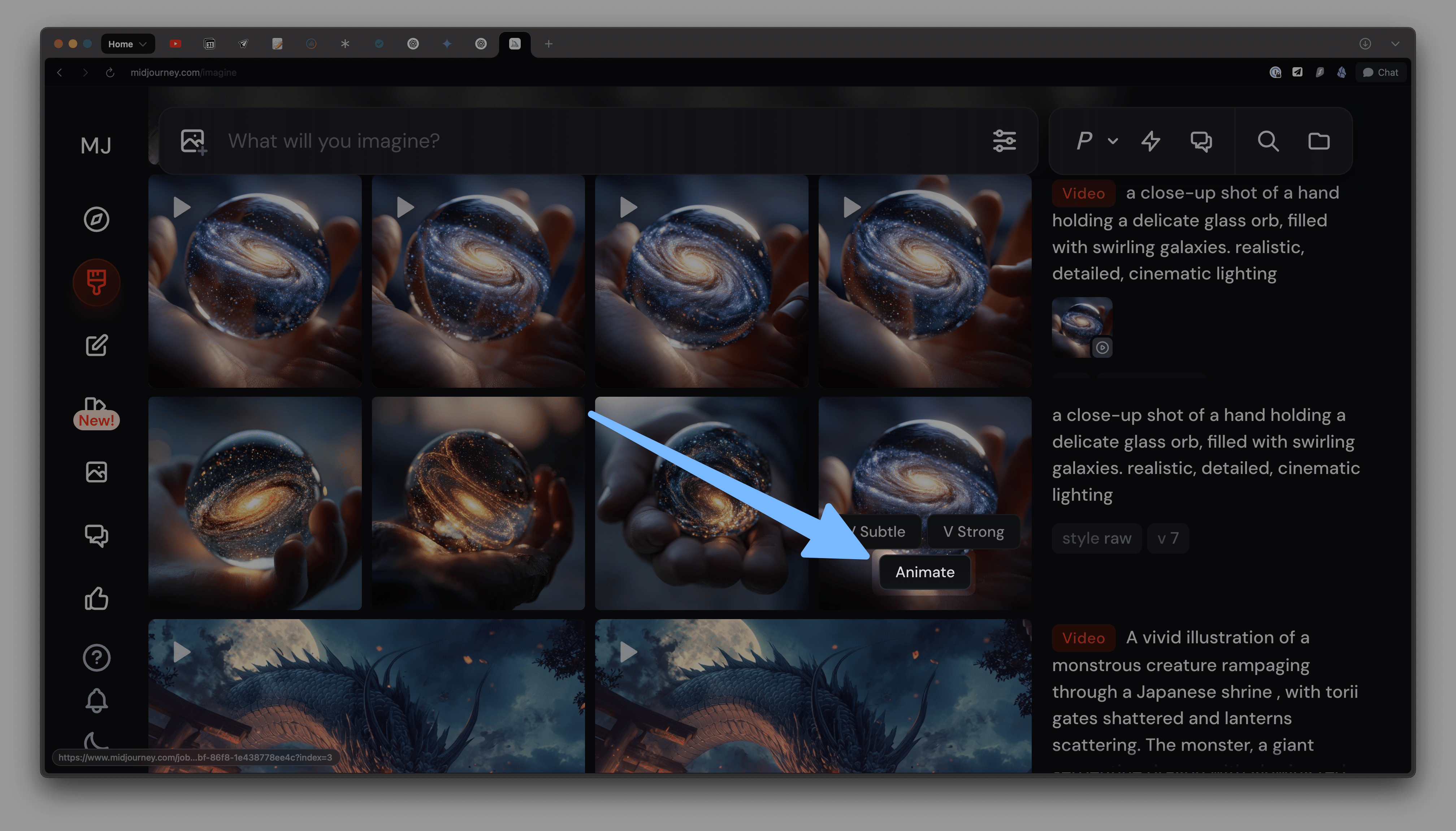 この強みは新しい動画機能にも活かされていて、これまでMidjourneyで生成した画風を、そのままアニメーション化できます。