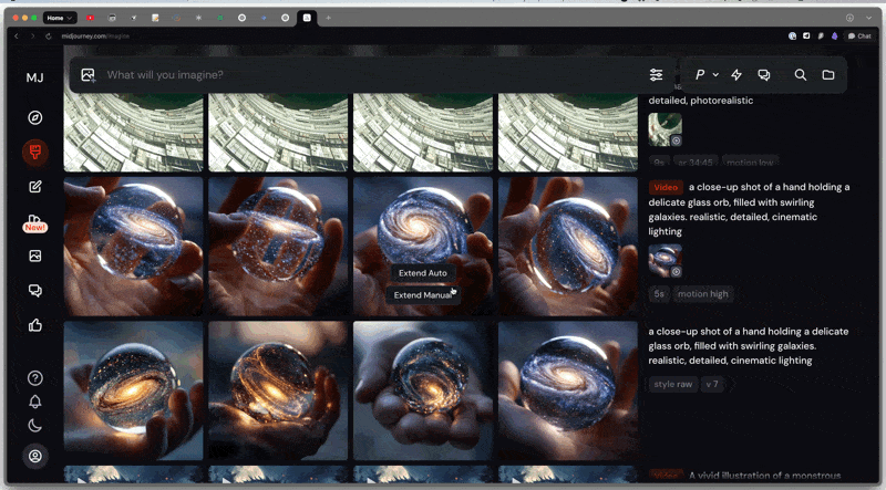 Midjourneyの動画機能の強みは、単発の動きだけでなく、Extend機能などを活用して一連のストーリーを持ったアニメーションを生成できる点にあります。