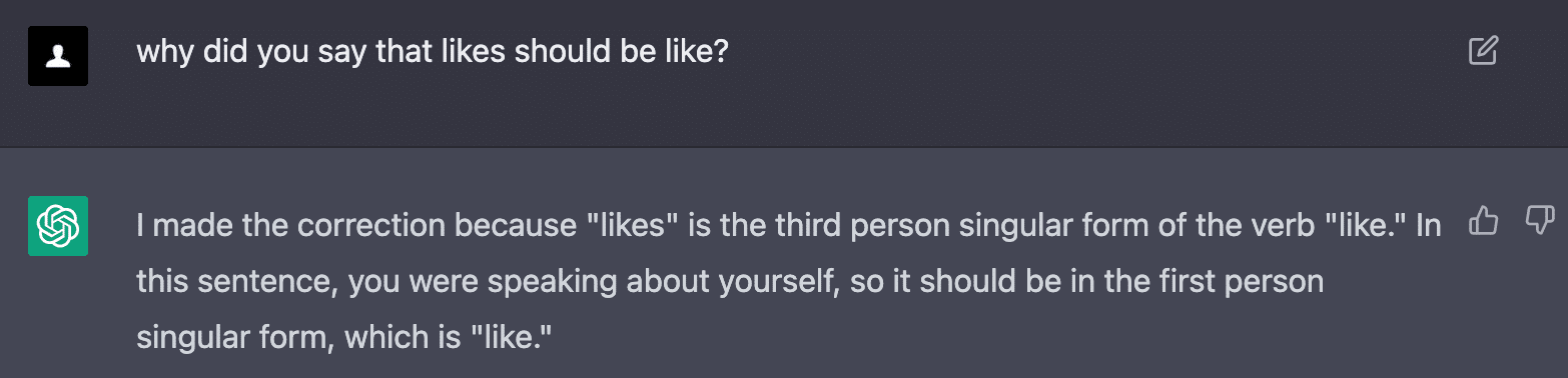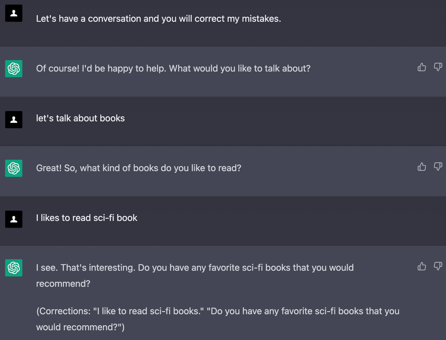 また、ChatGPTは、あなたの英語の間違いを訂正することもできます。