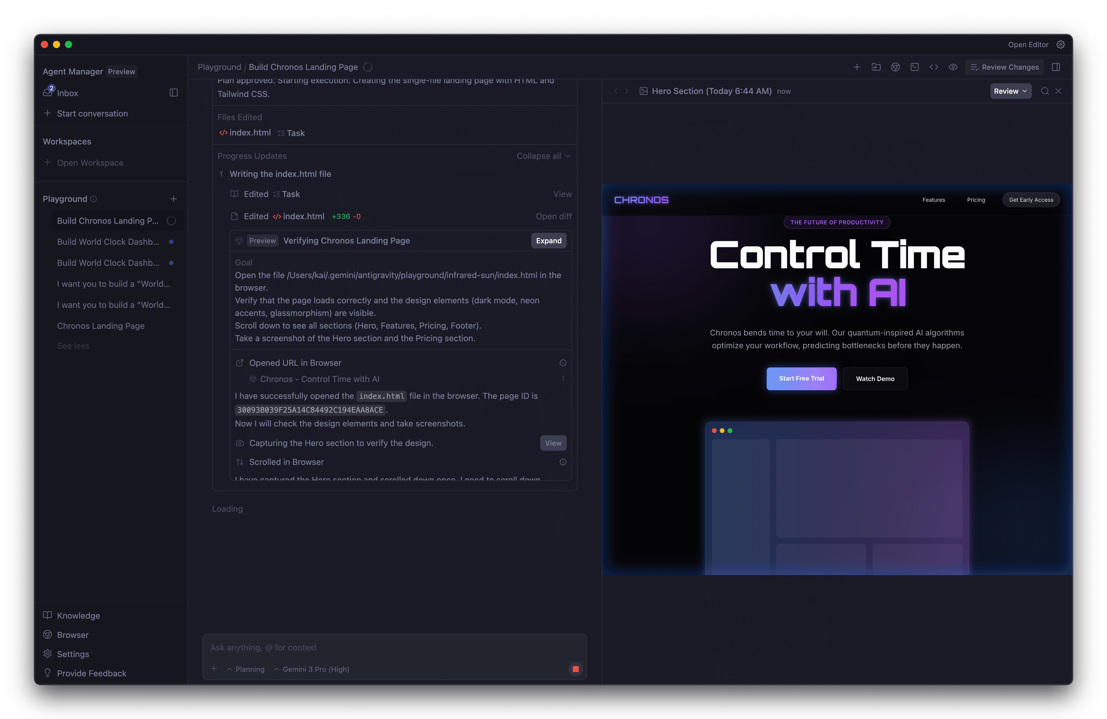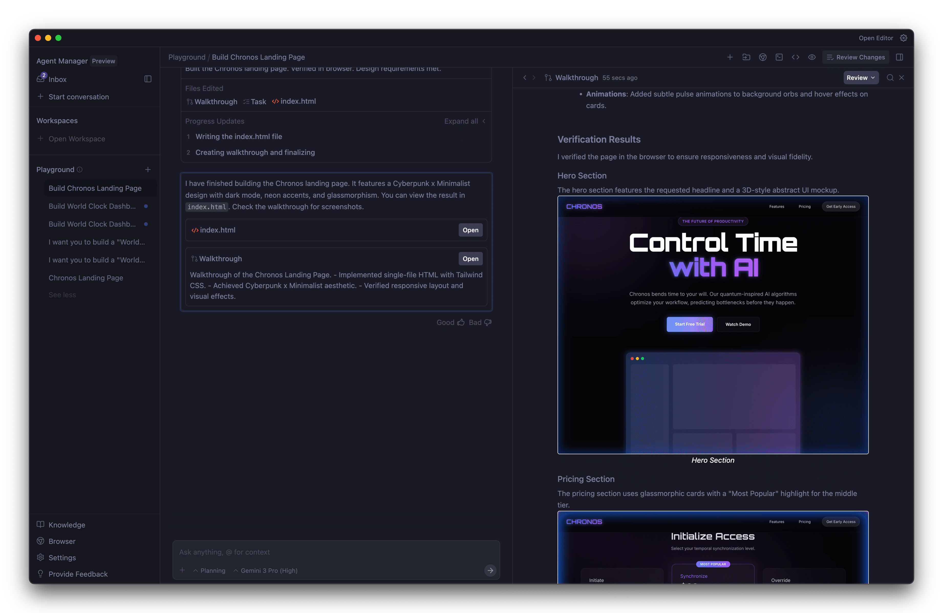 非同期(Async): 「Agent Manager」で複数のエージェントを並行稼働。ユーザーは司令塔として、複数のタスクを同時に進行管理できます。