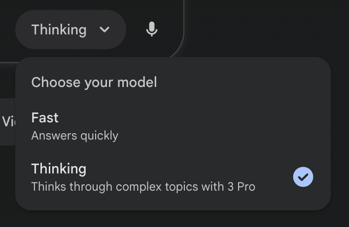 Gemini App / Search: アプリでは「Thinking」モデルを選択可能。検索では「AI Mode」で動的なUI生成(Generative UI)を実現。