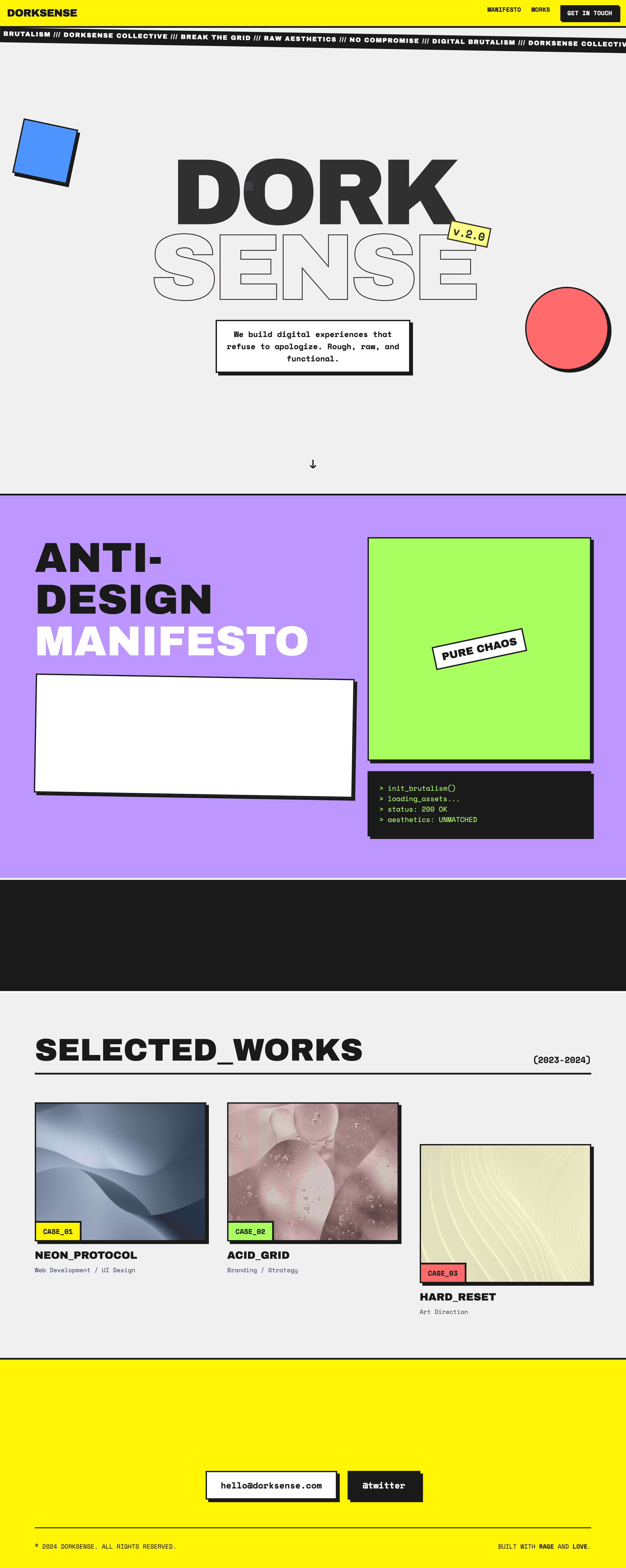 ネオブルータリズムを基調とした Web ページを制作してください。