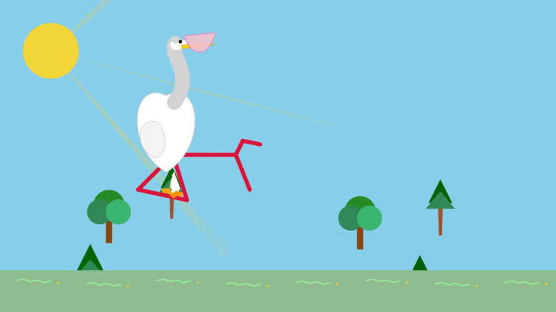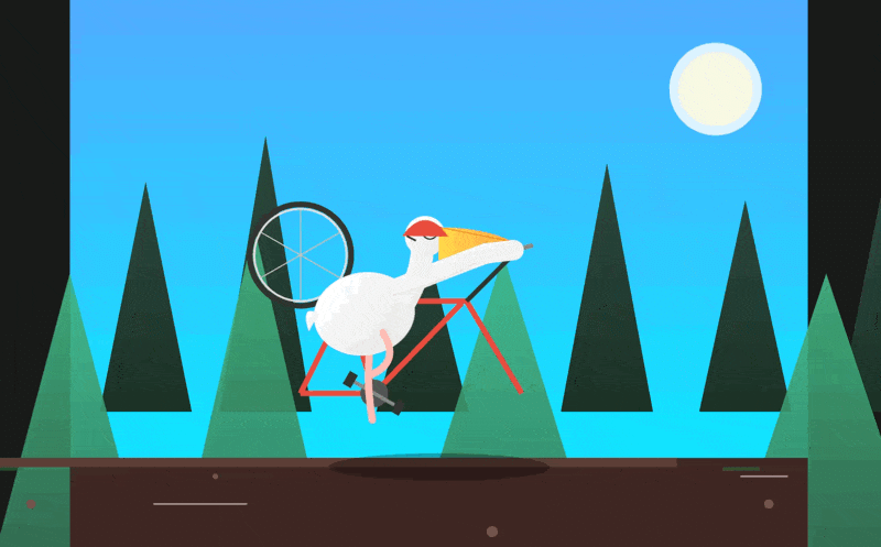 森の中を自転車に乗って走るペリカンの、超詳細なSVGアニメーションを作成してください。60fpsで滑らかに動作する、高品質なコードにしてください。