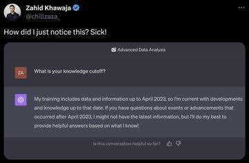 一部の海外ユーザーのChatGPTでナレッジカットオフが2023年4月、もしくは2023年9月に変更されていることが確認されています。LangChainなどの知識を得ていることが確認できます。