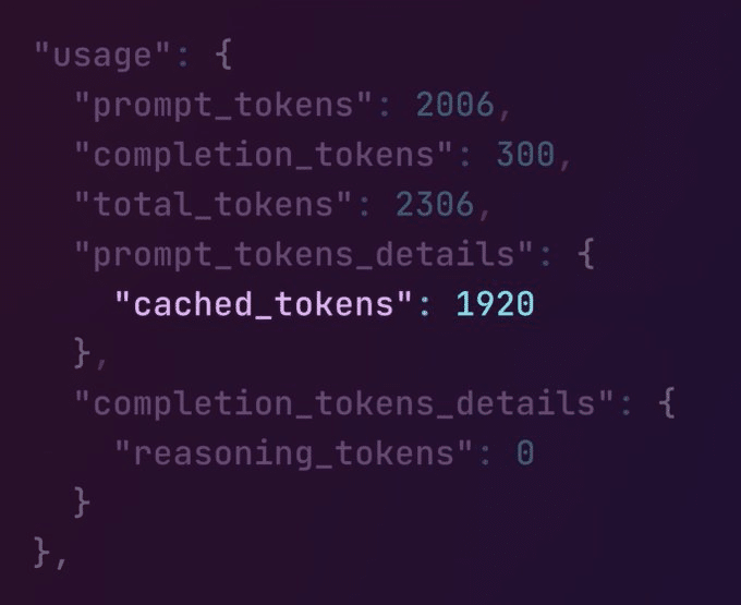 API応答の'usage'フィールド内に'cached_tokens'値が含まれます。