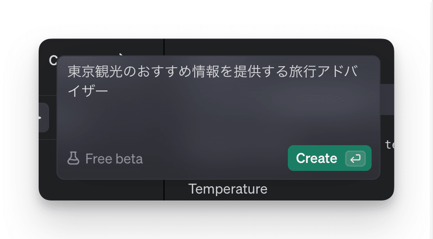 モデルの使用目的を記述するだけで、自動的にプロンプトを生成してくれます。