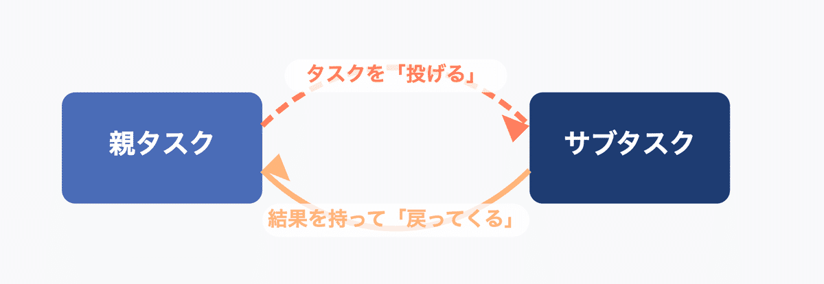 この仕組みにより、複雑なプロジェクトを小さく管理しやすい部分に分解できます。親タスクはサブタスクを「投げ」、サブタスクは完了時に結果を持って「戻ってくる」—— まさにブーメランのような動きです。