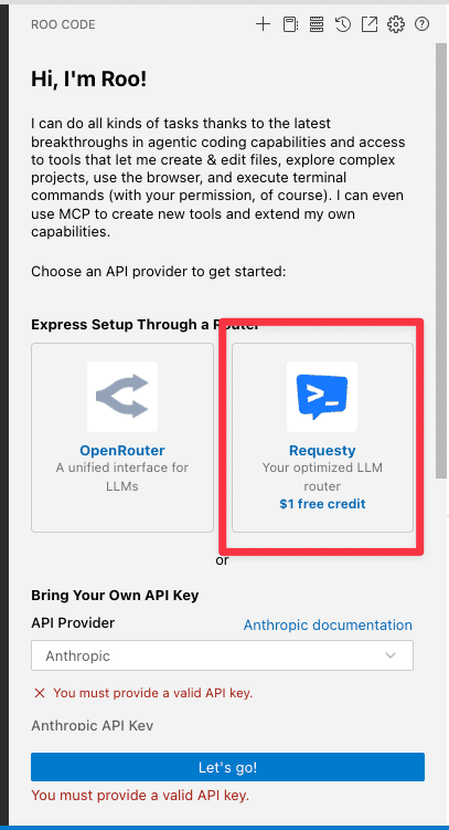 この記事では、セットアップが簡単なRequesty+Sonnet3.7を使用して説明を進めていきます。