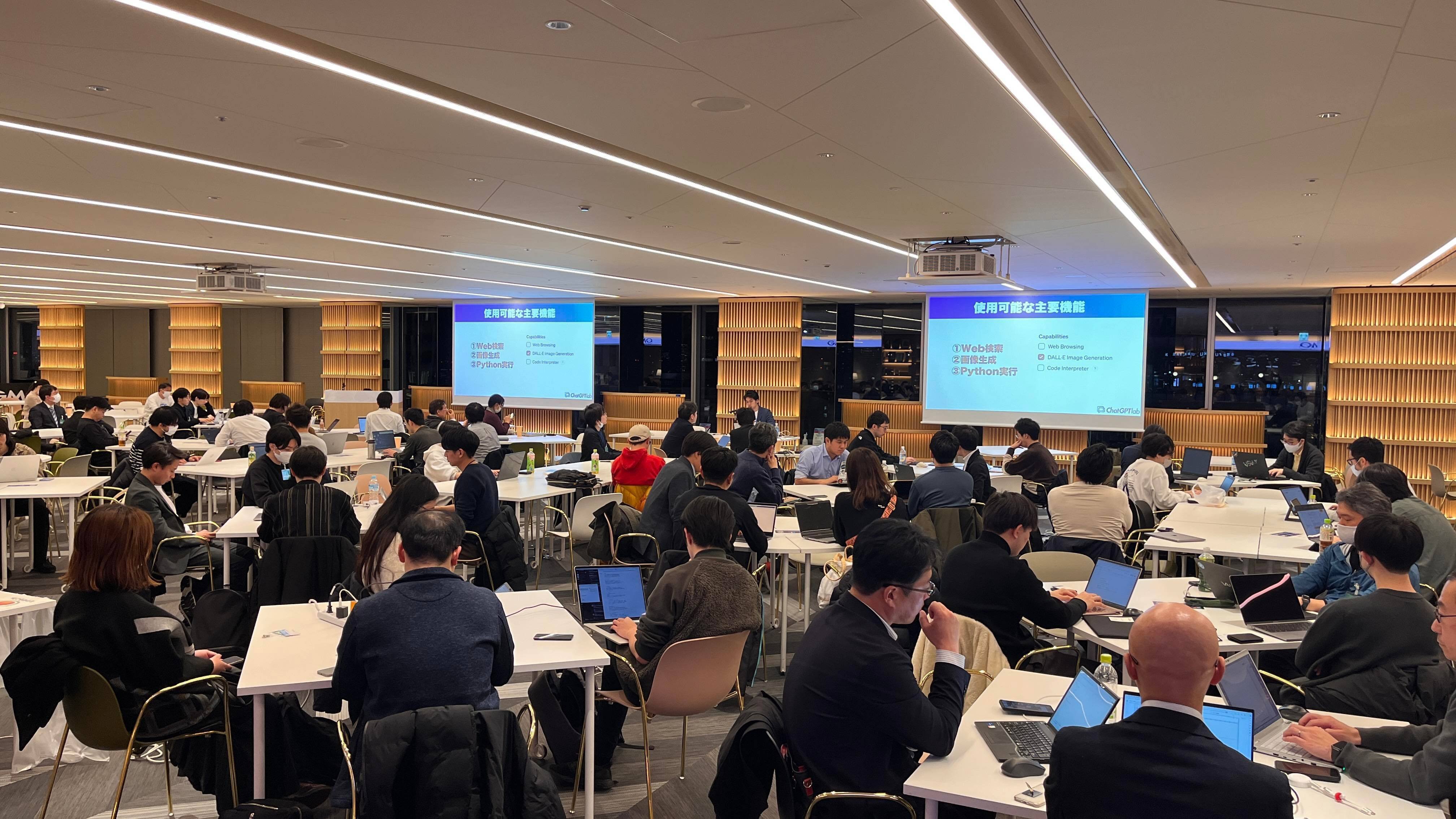 2月27日、「GPTsハッカソン@GMO Yours」が渋谷で開催されました。「業務生産性を向上させるGPT | AIで日本全体の業務生産性向上させよう」をテーマに、100名近い参加者が集まりました。