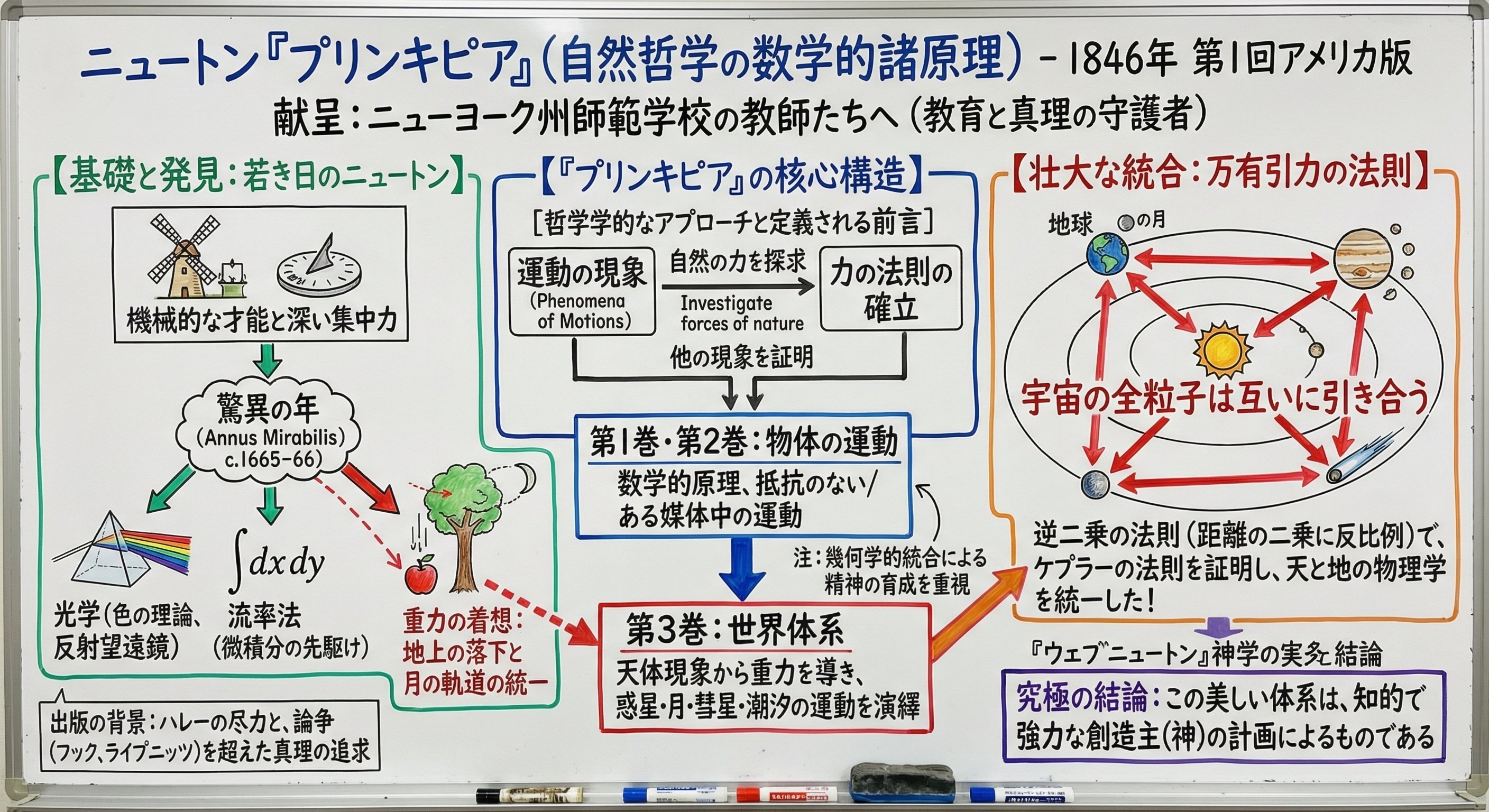 論文の内容を理解し、それを「教授が書くホワイトボードの板書」というスタイルで完璧にビジュアライズしてくれました。日本語の書き文字も自然で、概念の説明資料としてそのまま使えそうなクオリティです。