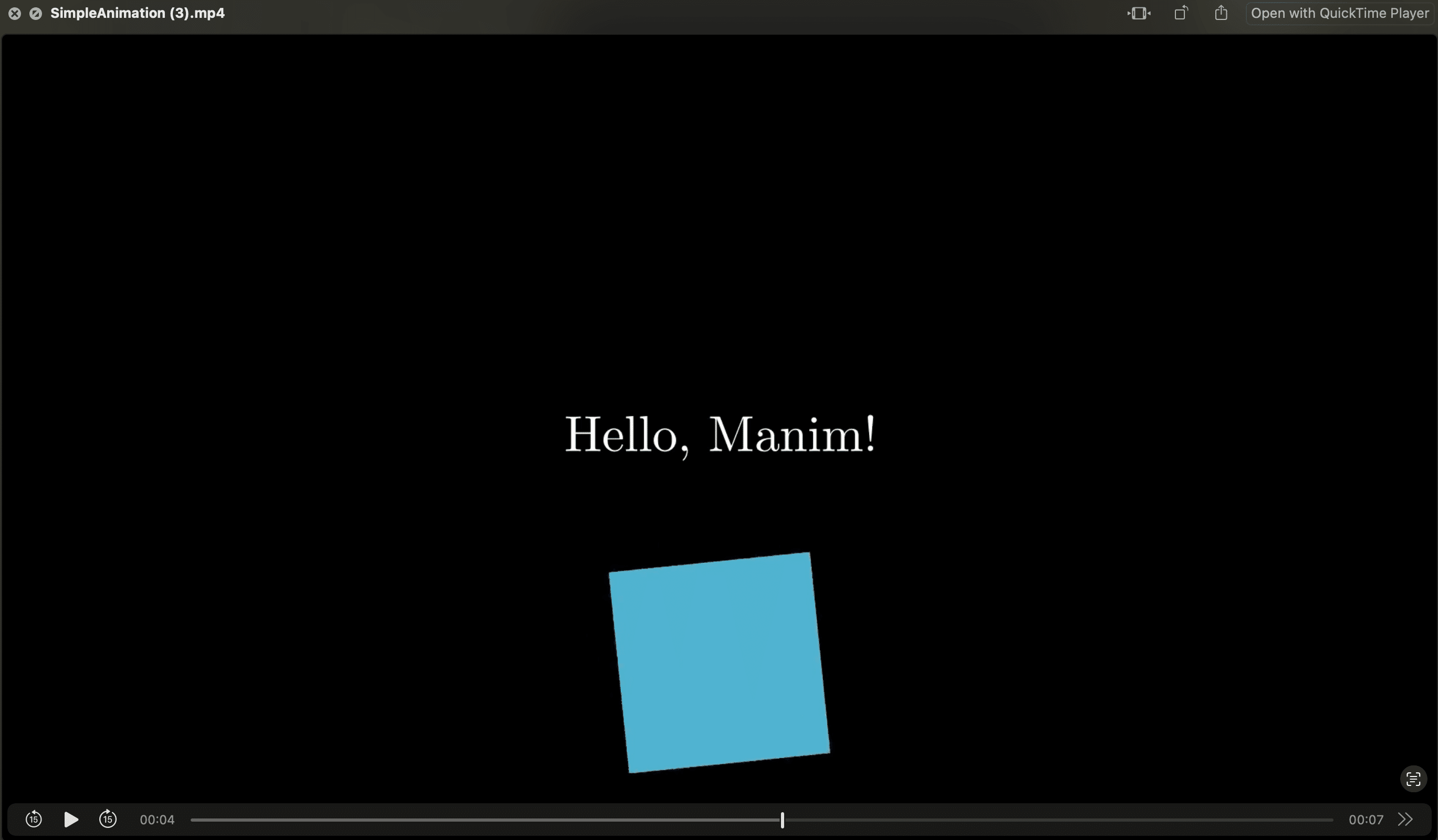 - 「Hello, Manim!」というタイトルが表示される