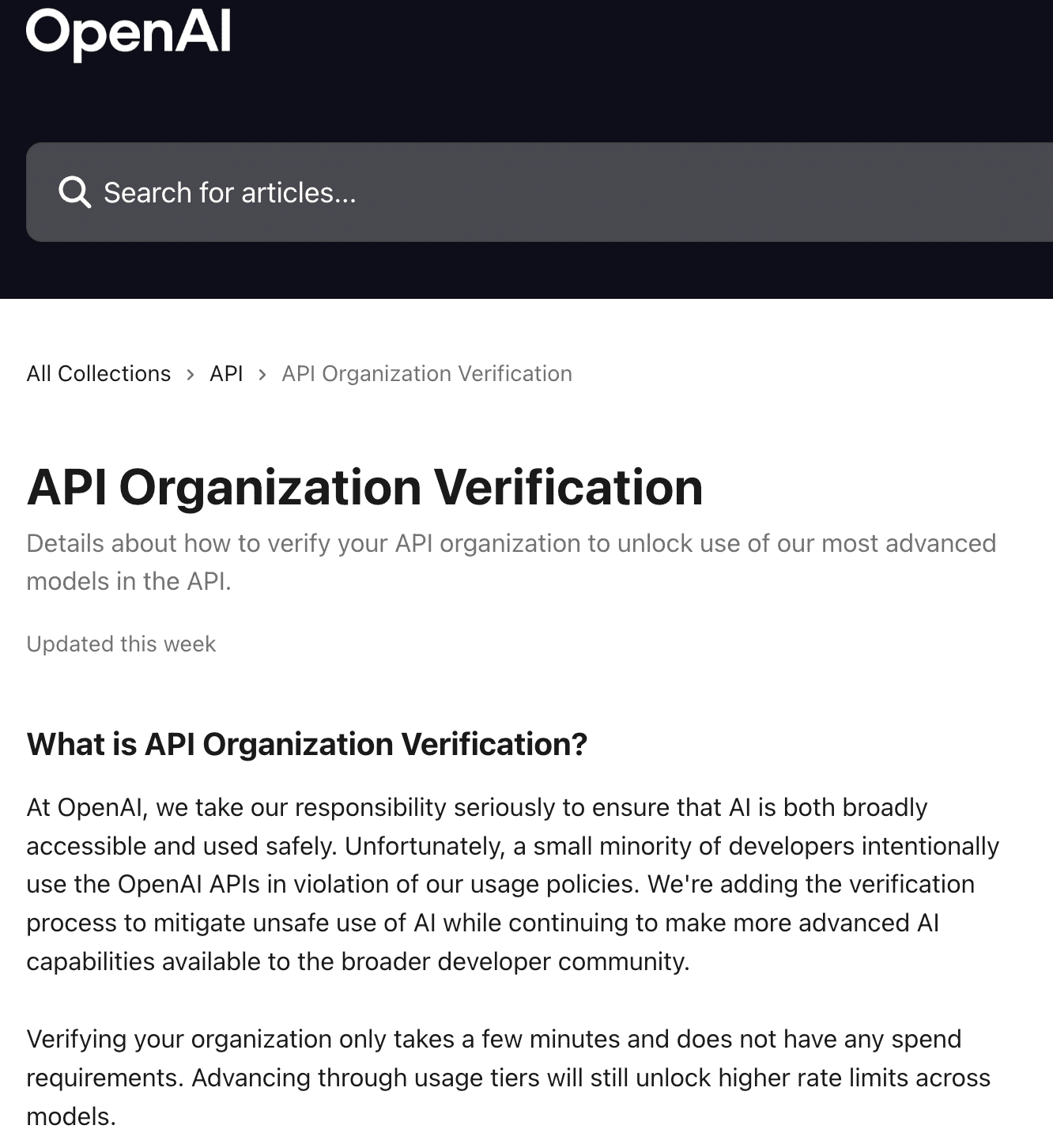2. OpenAI、API利用組織向けにID認証プロセスを導入。高度モデル利用に必要