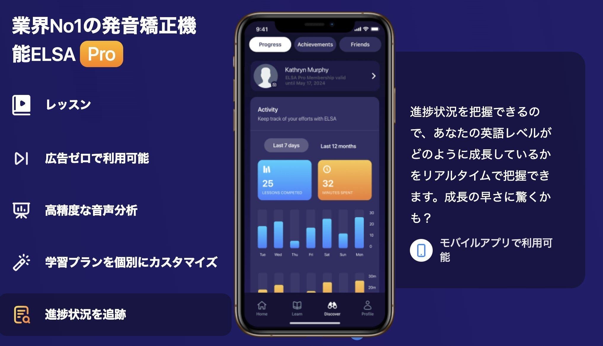 さらに、学習進捗管理機能により、自分の成長を確認し、改善点を特定することができます。さらに、7000以上のミニレッスンがあり、それぞれが発音の様々な側面に取り組むように綿密に設計されているため、包括的な学習を体験できます。