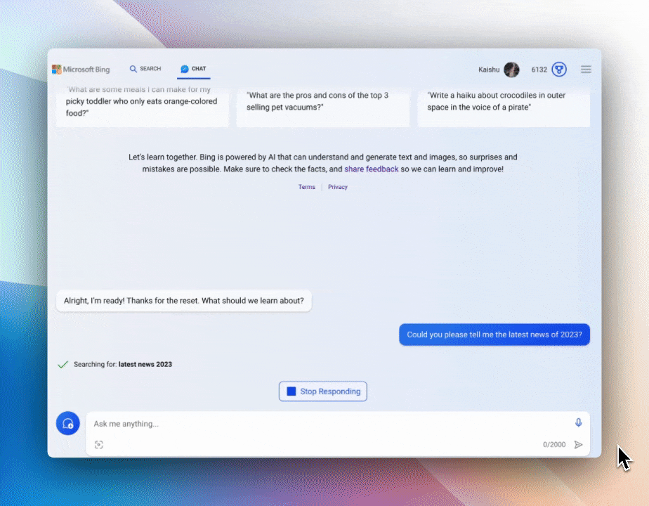 言語学習は文法や語彙だけでなく、その国の文化を理解し、世界的な出来事を常にアップデートすることが重要です。Bing AIでは、最新情報にもアクセスできるため、世界の最新の出来事、ニュース、トレンドについて会話することができます。