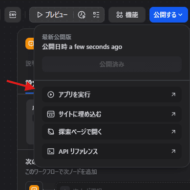 アプリの機能によっては入力時変数や出力の形式を整える、出力変数を設定するなどをする必要がありますが、その場合は、Difyに関する知識が新しいモデル(例: Claude 4.1 OpusやClaude 4 Sonnet)に質問することをお勧めします。(2025年9月時点)