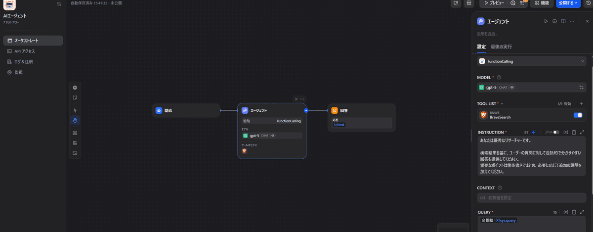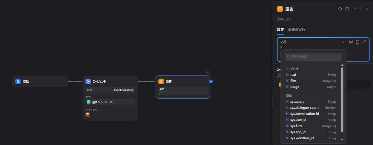 チャットフローでのエージェント開発の詳細については過去の記事をご覧ください。