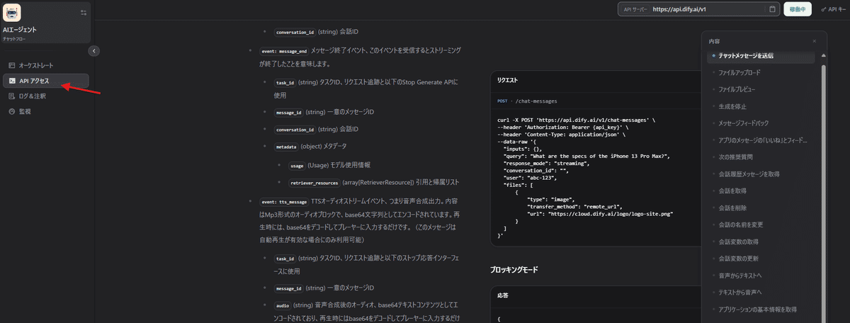 ※アプリから利用する際は会話IDを指定しないと引き継がれないので注意が必要ですが、DifyのAPI仕様書をClaude Codeに渡せば問題ないです。