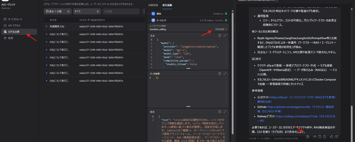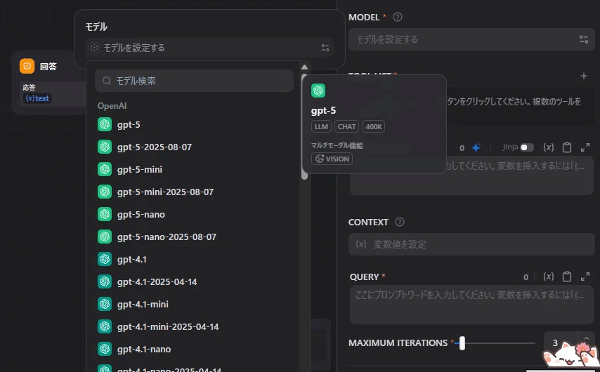 こういった試験と変更が簡単なのもDifyの魅力ですね。
